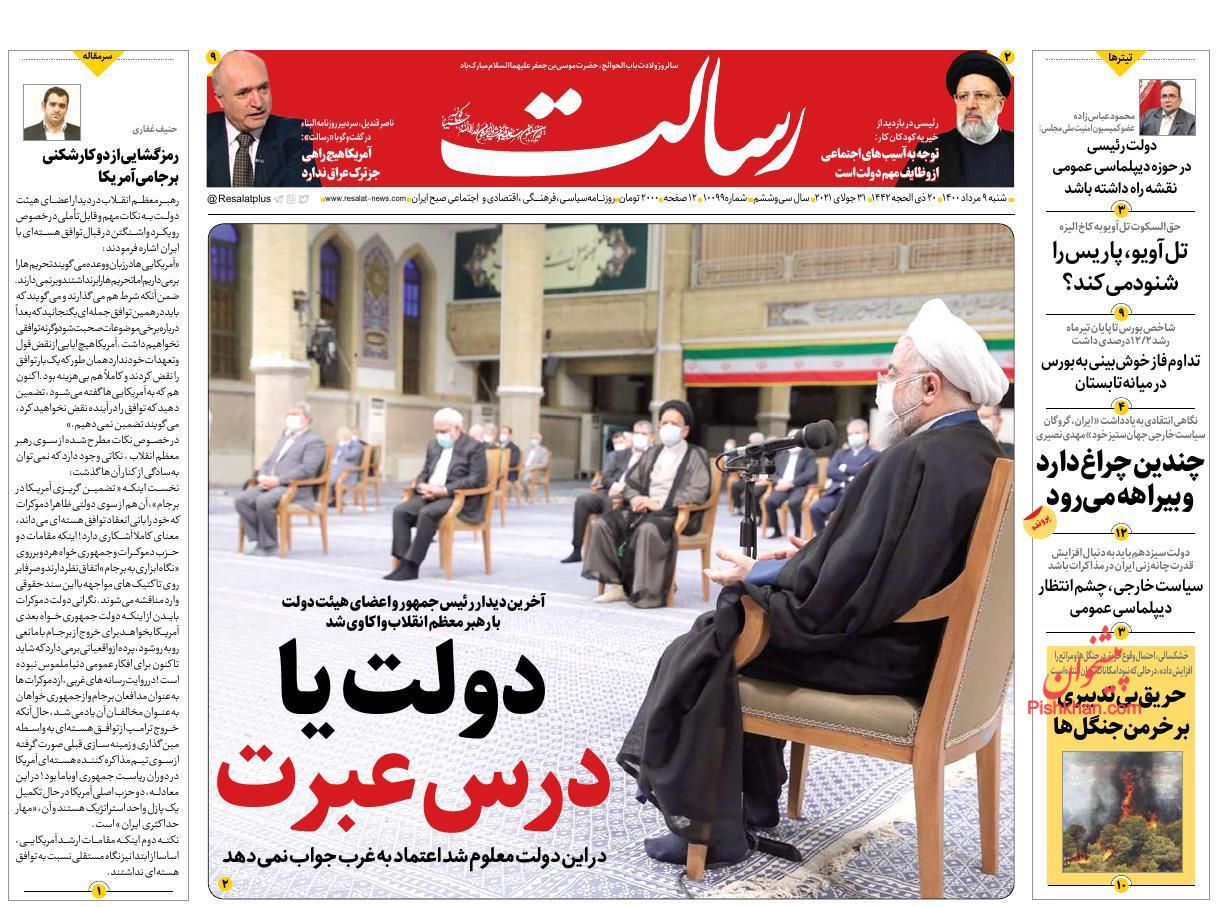 صفحه نخست روزنامههای دوشنبه ۴ مرداد