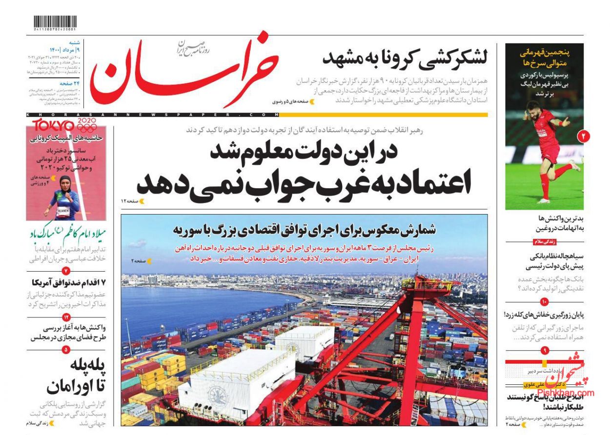 صفحه نخست روزنامههای یکشنبه ۳ مرداد