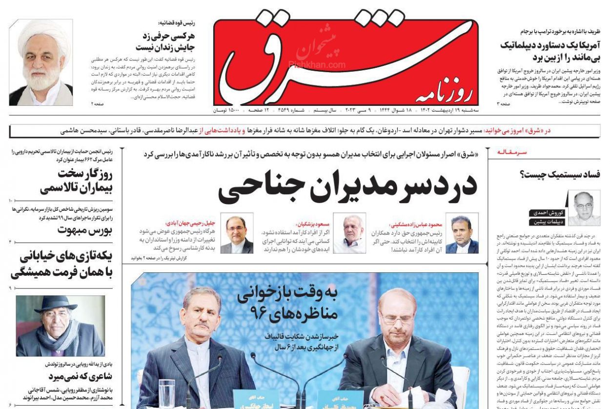 عناوین اخبار روزنامه شرق در روز سه‌شنبه ۱۹ ارديبهشت