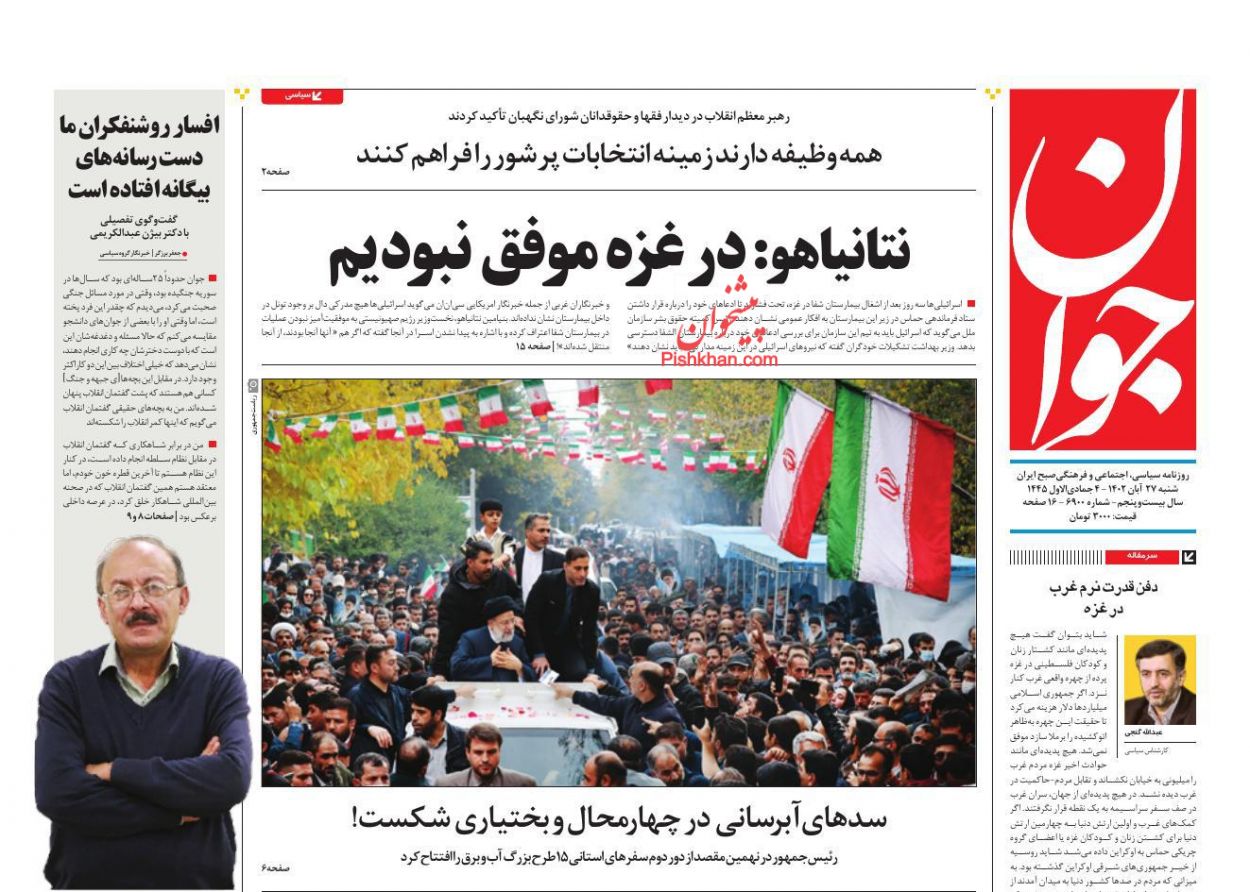 عناوین اخبار روزنامه جوان در روز شنبه ۲۷ آبان