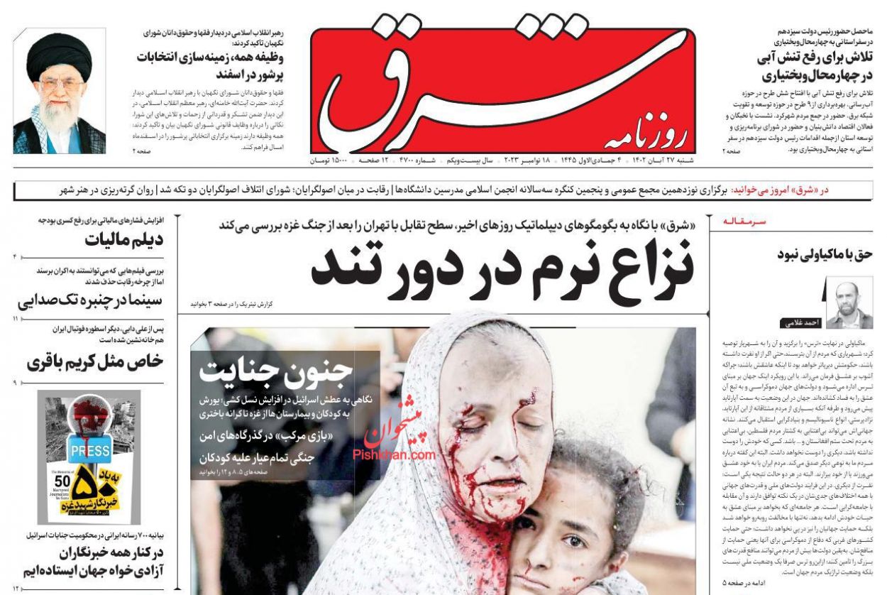 عناوین اخبار روزنامه شرق در روز شنبه ۲۷ آبان