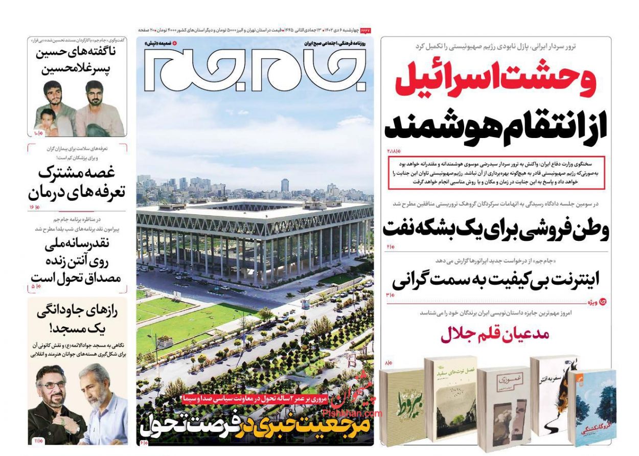 عناوین اخبار روزنامه جام جم در روز چهارشنبه ۶ دی