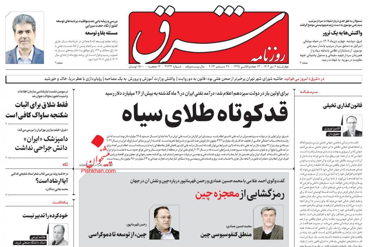 یادداشت روزنامه‌های چهارشنبه ۶ دی ماه ۱۴۰۲