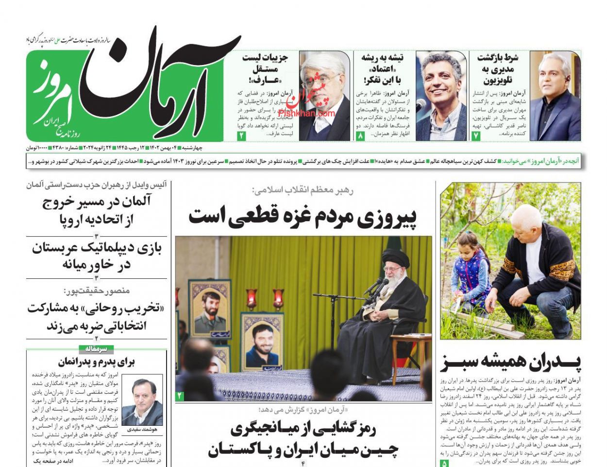 عناوین اخبار روزنامه آرمان امروز در روز چهارشنبه ۴ بهمن