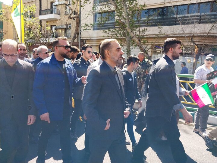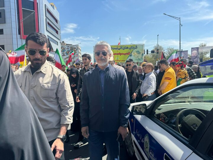 ۱۰:۱۵ حضور رییس سازمان انرژی اتمی در راهپیمایی روز جهانی قدس