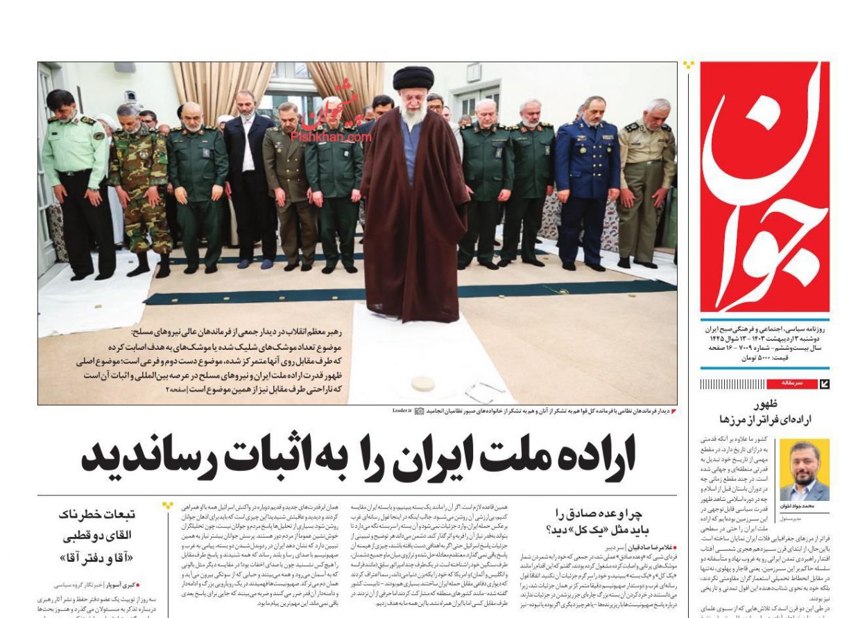 عناوین اخبار روزنامه جوان در روز دوشنبه ۳ ارديبهشت