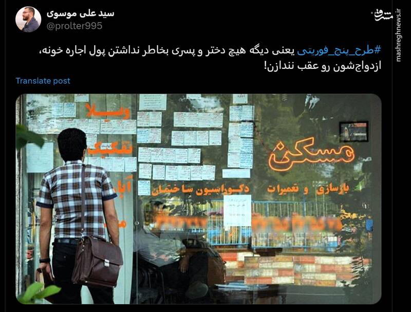 * اعطای یک قطعه زمین مسکونی به همۀ افراد فاقد مسکن، بههمراه تأمین سهسالۀ خانۀ زوجهای جوان