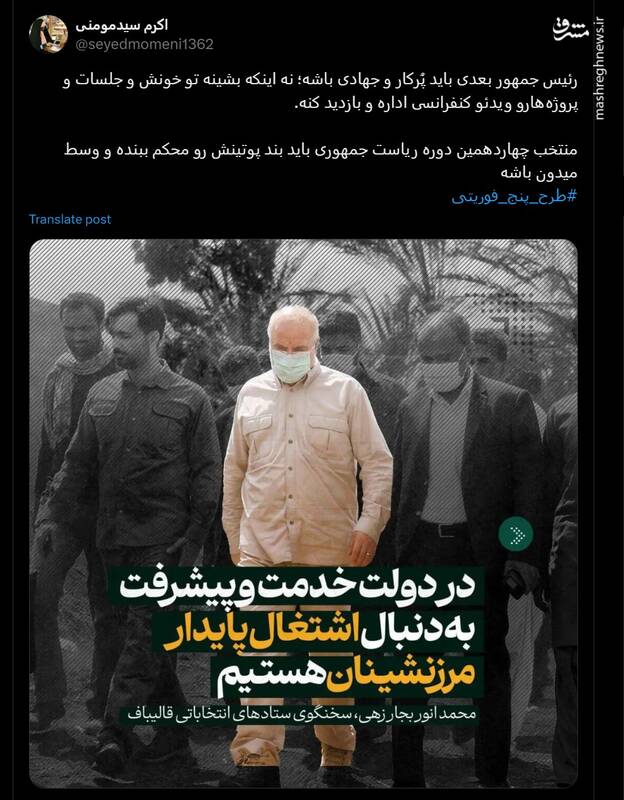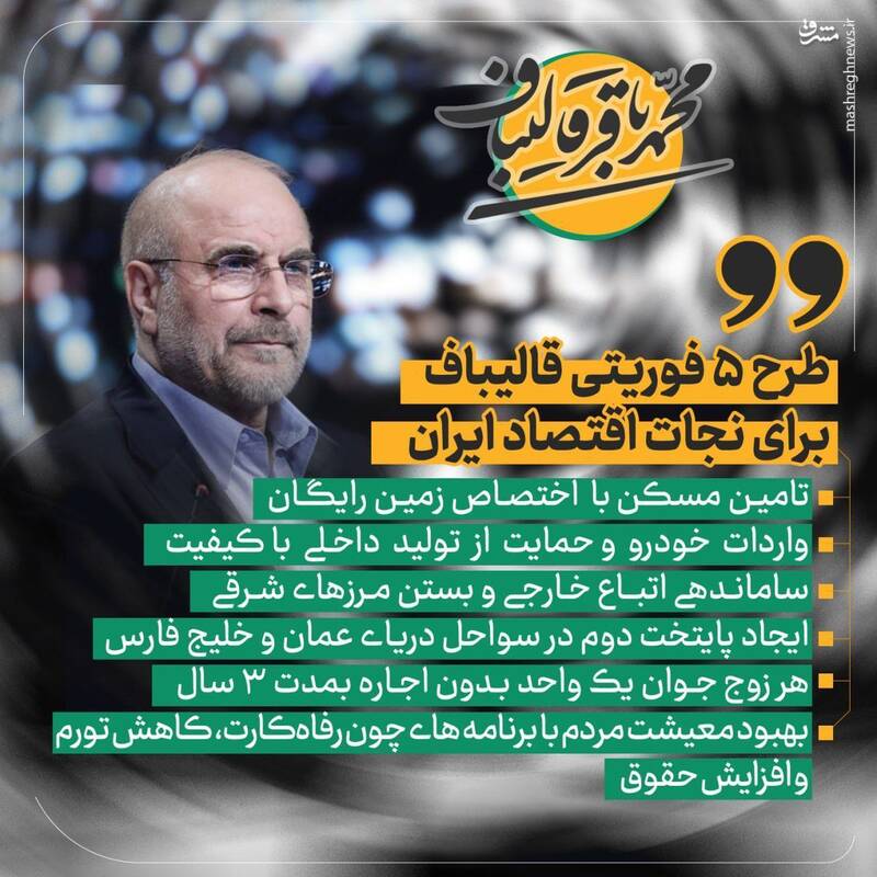 کاربران فضای مجازی به استقبال طرح جدید قالیباف رفتند و در روزهای اخیر هشتگهای مشابه به «طرح پنج فورتی قالبیباف» در شبکه اجتماعی توئیتر ترند شده است. محمدباقر قالیباف در جریان مناظره دوم اقتصادی در ۳۱ خرداد، از یک طرح جدید در دولت «پیشرفت و خدمت» رونمایی کرد که به وسیله آن، پنج معضل بحرانی و فوری کشور در اولویت قرارگرفته و پیگیری و حل خواهد شد.