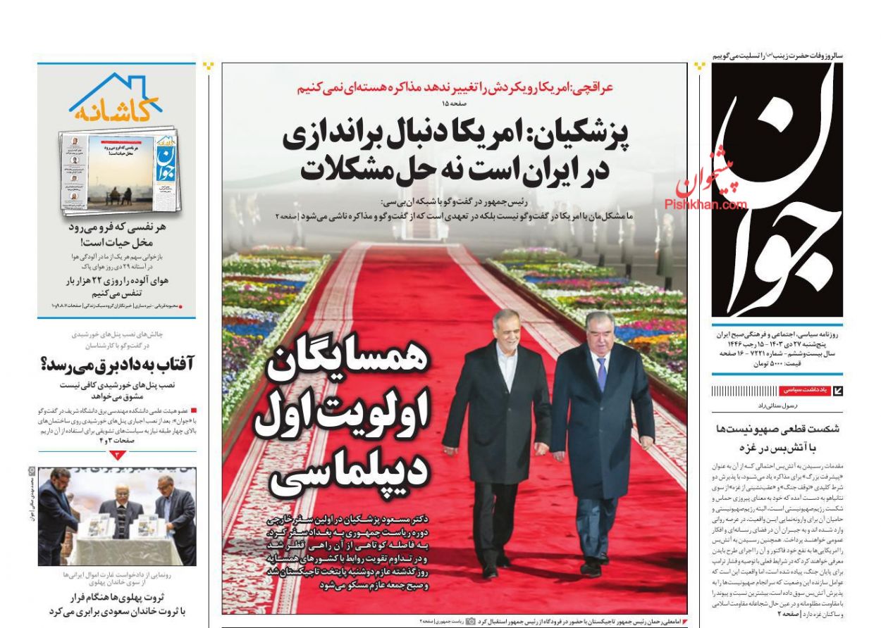 عناوین اخبار روزنامه جوان در روز پنجشنبه ۲۷ دی