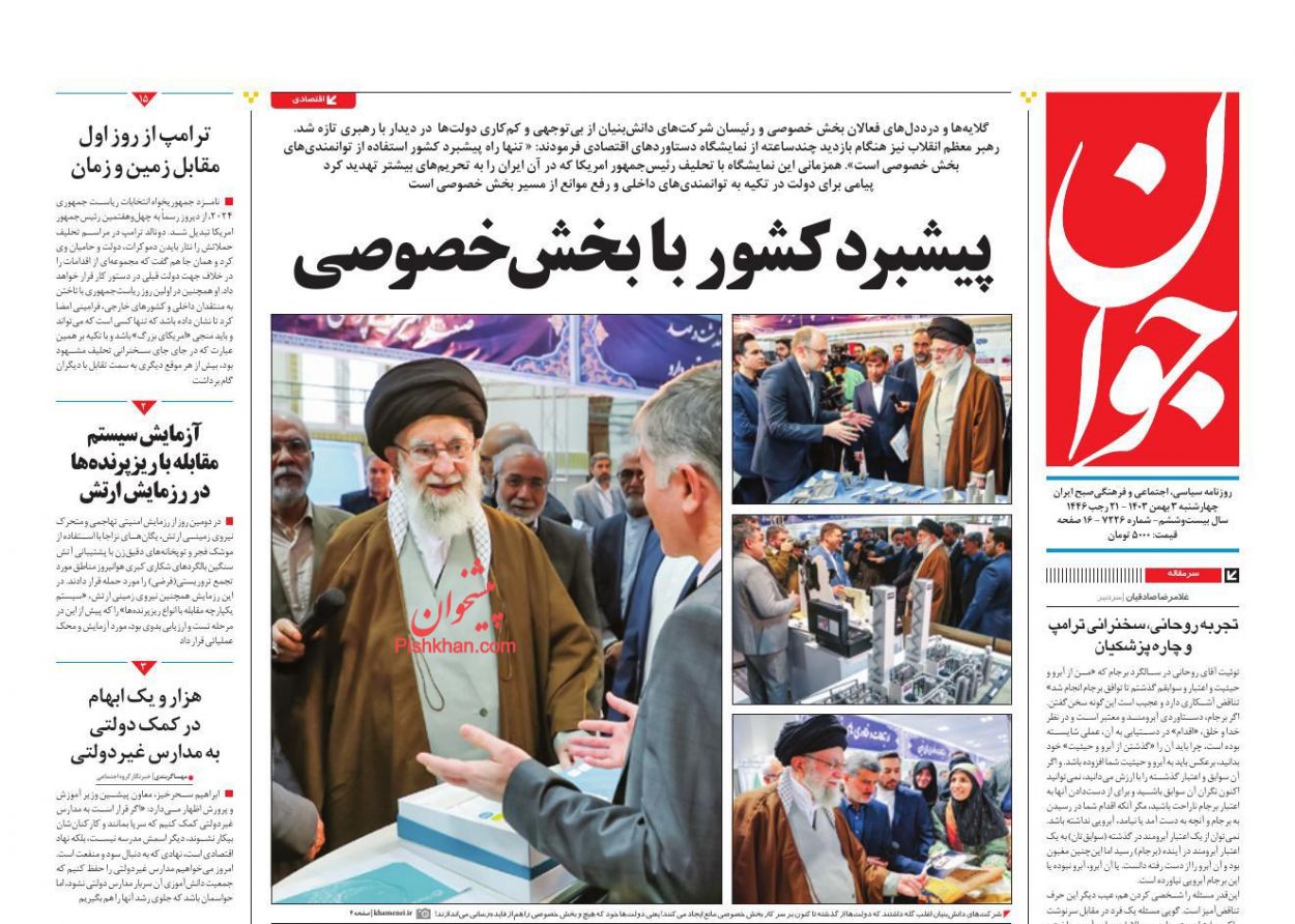 دروازه‌ای که به روی پیروزی باز شد، خطر روایت‌سازی انحرافی برای امنیت و عزت ملی، بازگشت ترامپ و دو سناریوی محتمل؛ یادداشت برخی از روزنامه‌های امروز می‌باشد.
