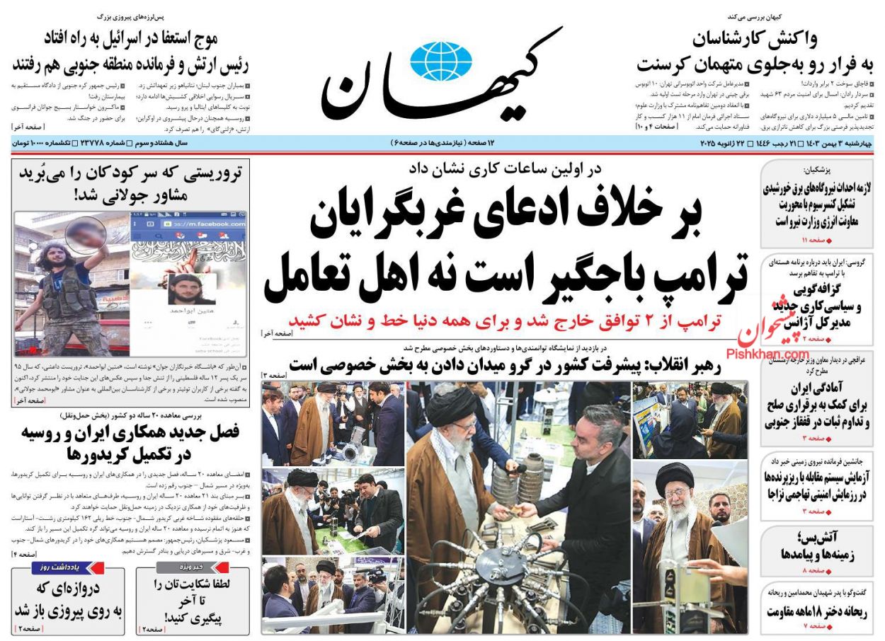 عناوین اخبار روزنامه کيهان در روز چهارشنبه ۳ بهمن