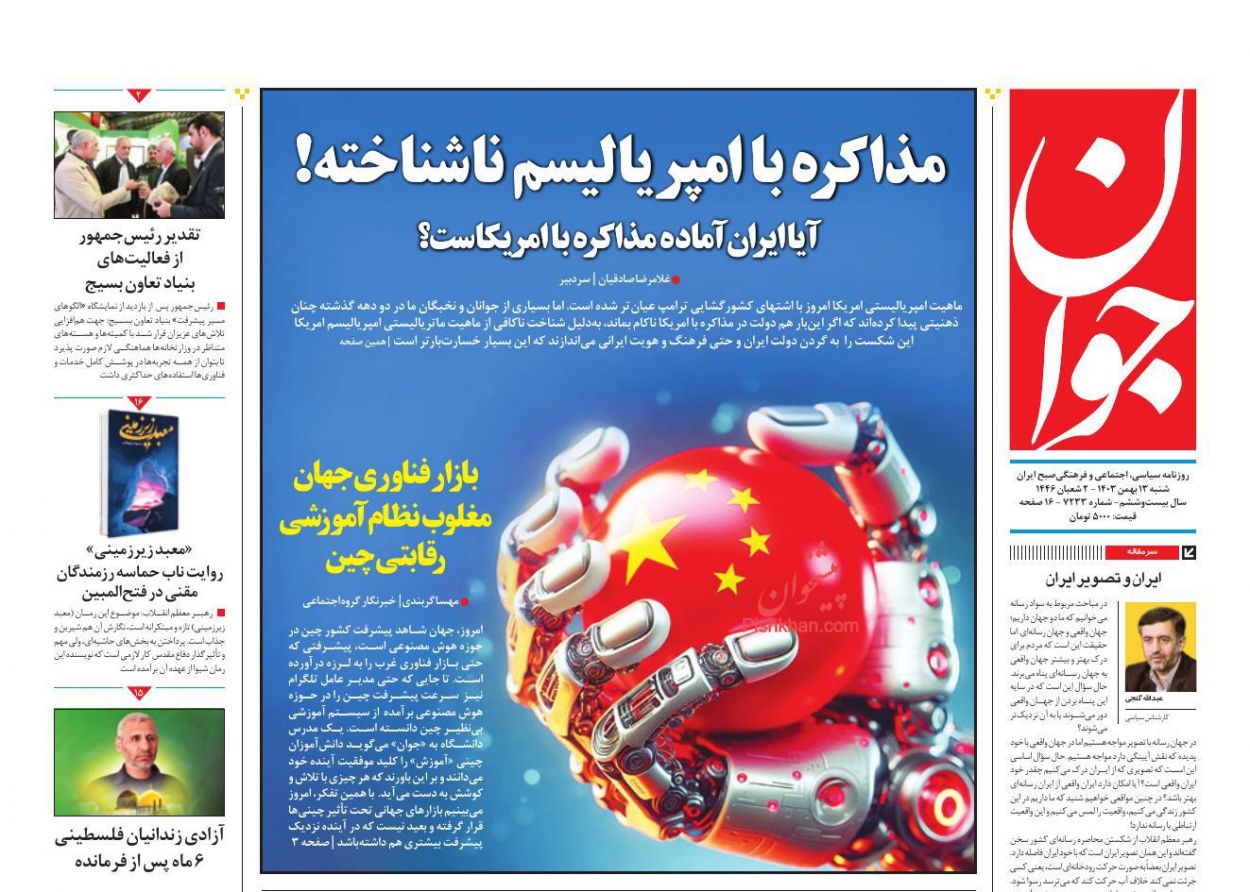 عناوین اخبار روزنامه جوان در روز شنبه ۱۳ بهمن