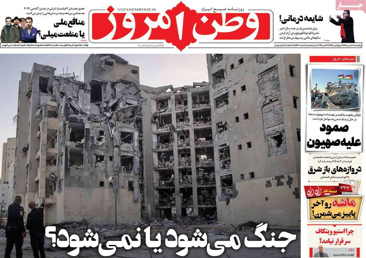 صفحه نخست روزنامههای پنجشنبه ۱۰ مهرماه ۱۴۰۴