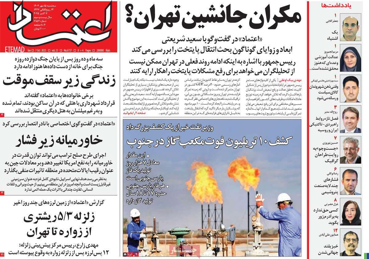 صفحه نخست روزنامههای دوشنبه هفتم مهرماه ۱۴۰۴