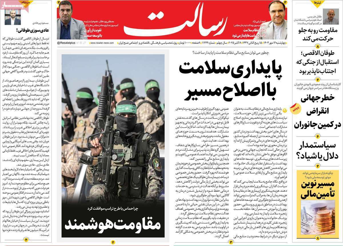 صفحه نخست روزنامههای چهارشنبه ۱۶ مهرماه ۱۴۰۴