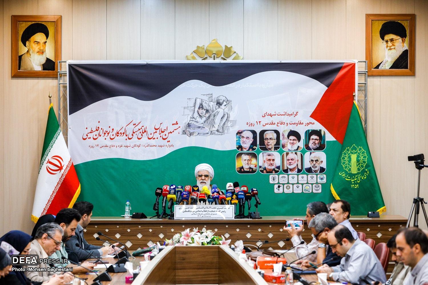 نشست خبری هشتمین اجلاسیه همبستگی با کودکان فلسطینی  با حضور حجت‌الاسلام والمسلمین «محمدحسن اختری» رئیس کمیته حمایت از انقلاب اسلامی و مردم فلسطین و اصحاب رسانه در محل دفتر شورای هماهنگی تبلیغات اسلامی برگزار شد.