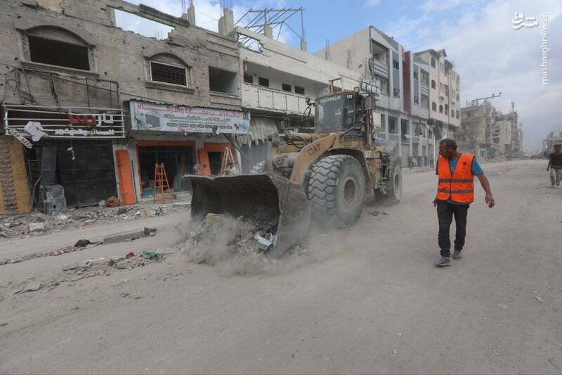 تیمهای شهرداری غزه با همکاری هیئت عربی بینالمللی بازسازی فلسطین به کار خود برای بازگشایی خیابان النصر و پاکسازی آوارها ادامه میدهند.