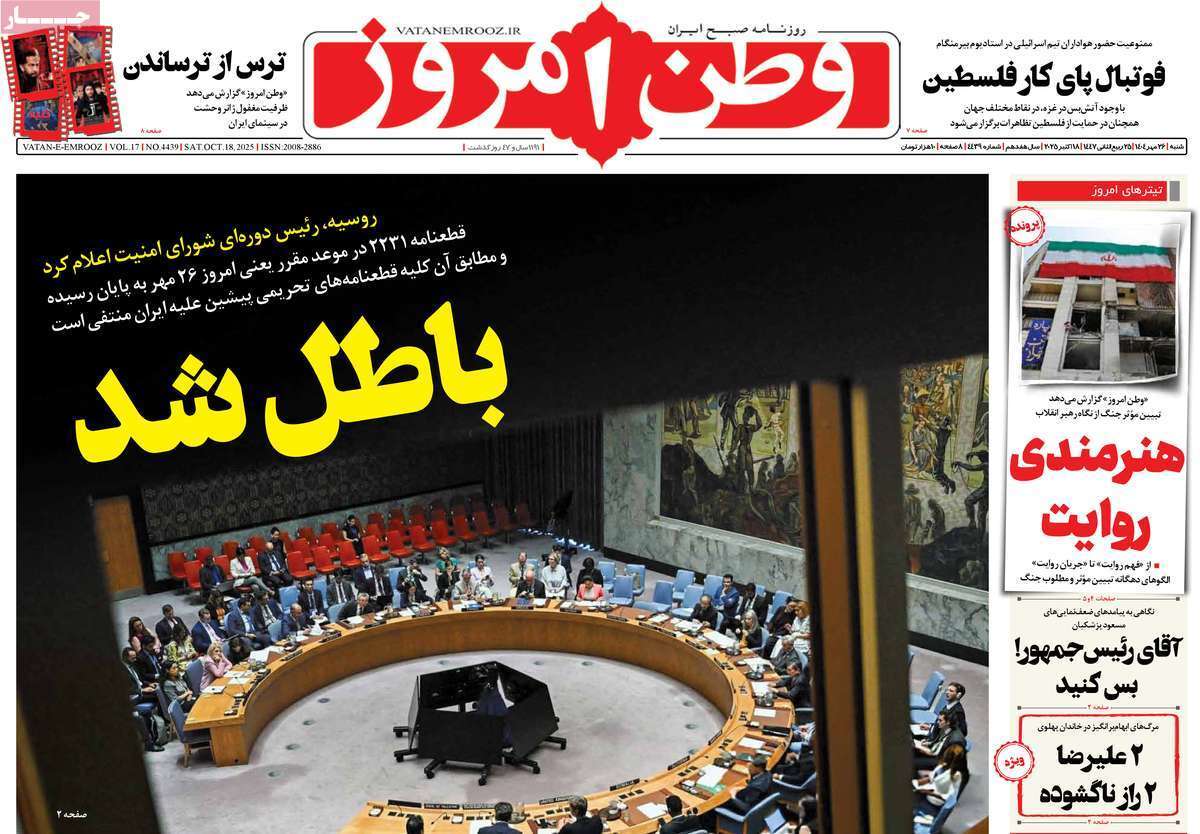 صفحه نخست روزنامههای شنبه ۱۹ مهرماه ۱۴۰۴