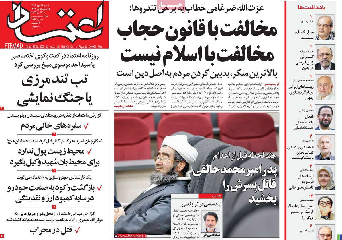 صفحه نخست روزنامههای شنبه ۲۶ مهرماه ۱۴۰۴
