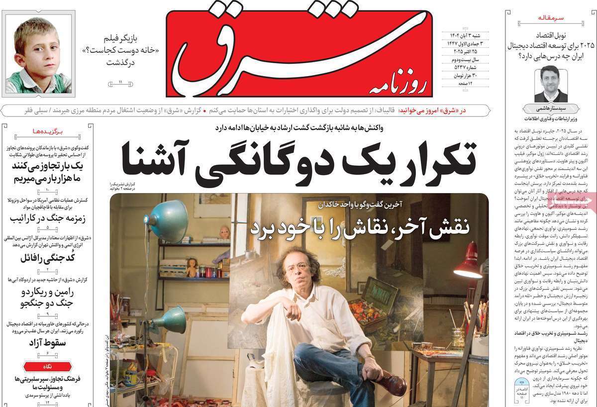 صفحه نخست روزنامههای شنبه سوم آبان ماه ۱۴۰۴