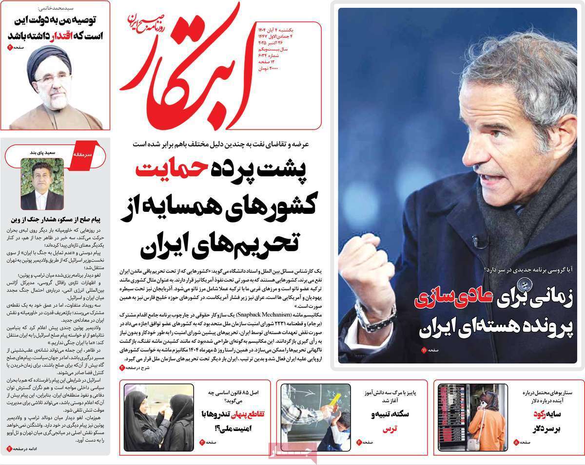 صفحه نخست روزنامههای یکشنبه چهارم آبان ماه ۱۴۰۴