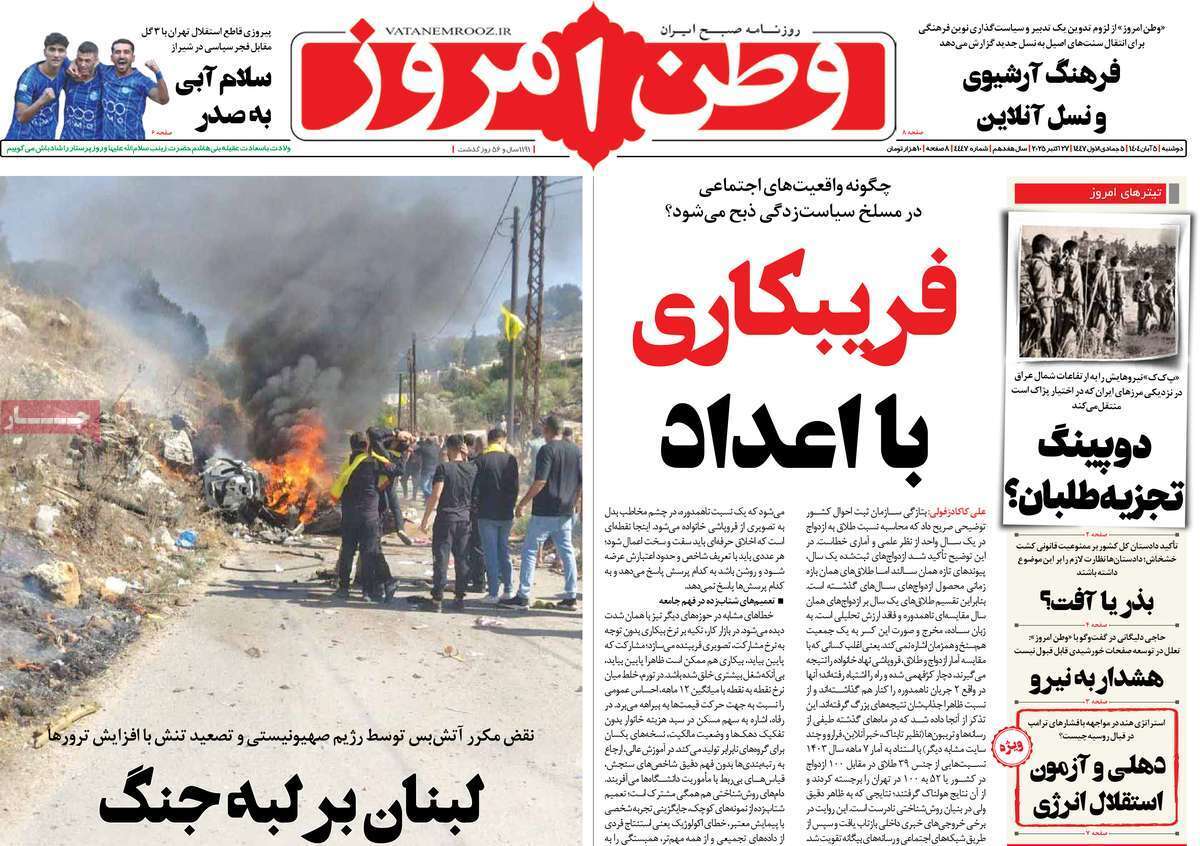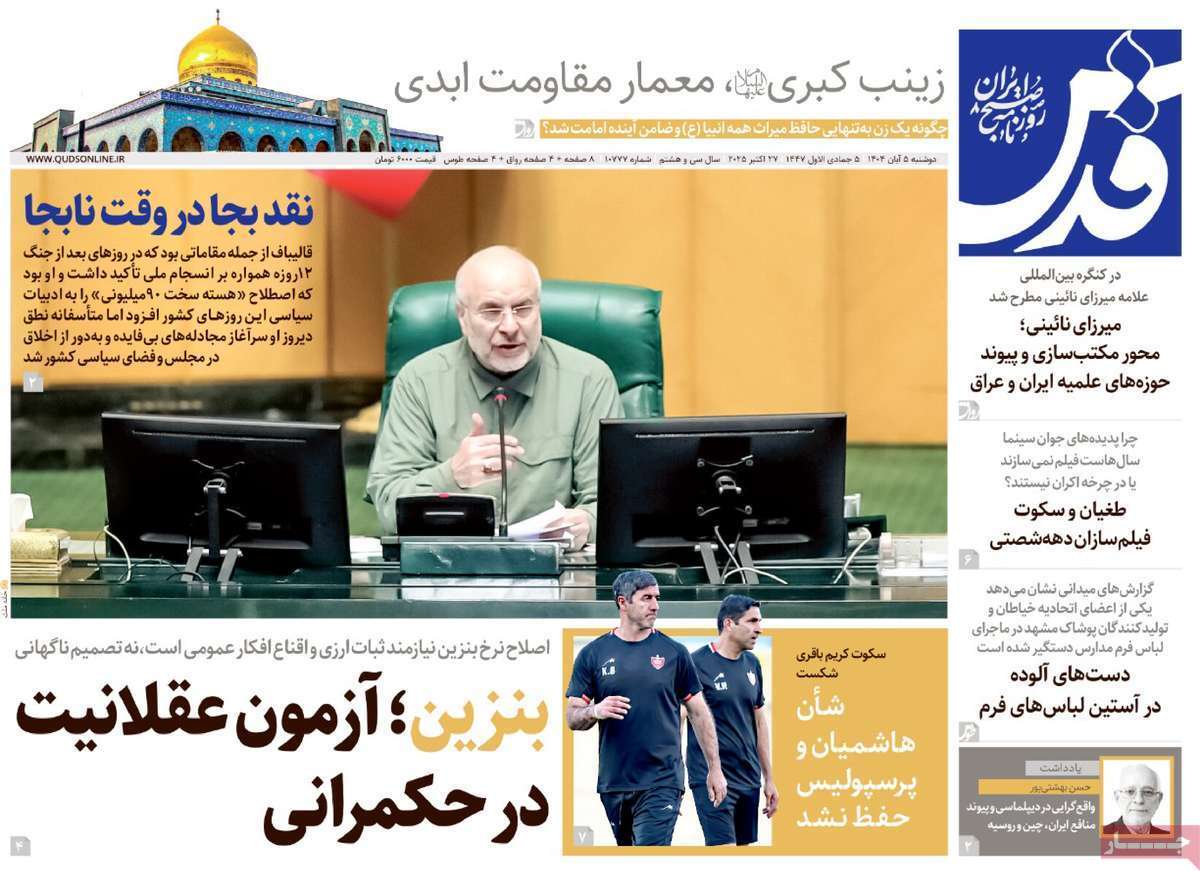 صفحه نخست روزنامه‌های دوشنبه پنجم آبان ماه ۱۴۰۴