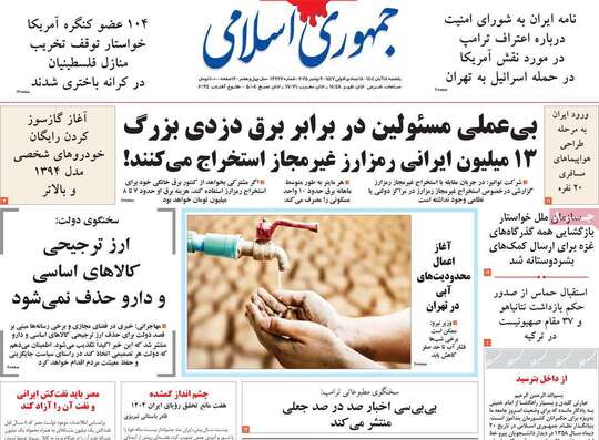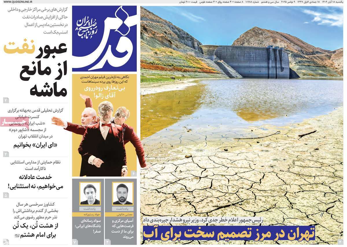 صفحه نخست روزنامه‌های یکشنبه ۱۸ آبان ماه ۱۴۰۴