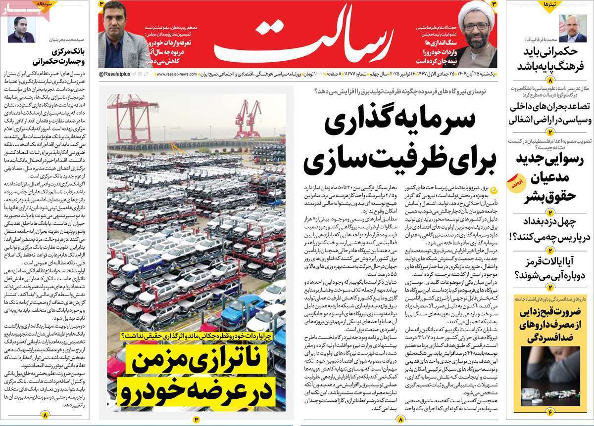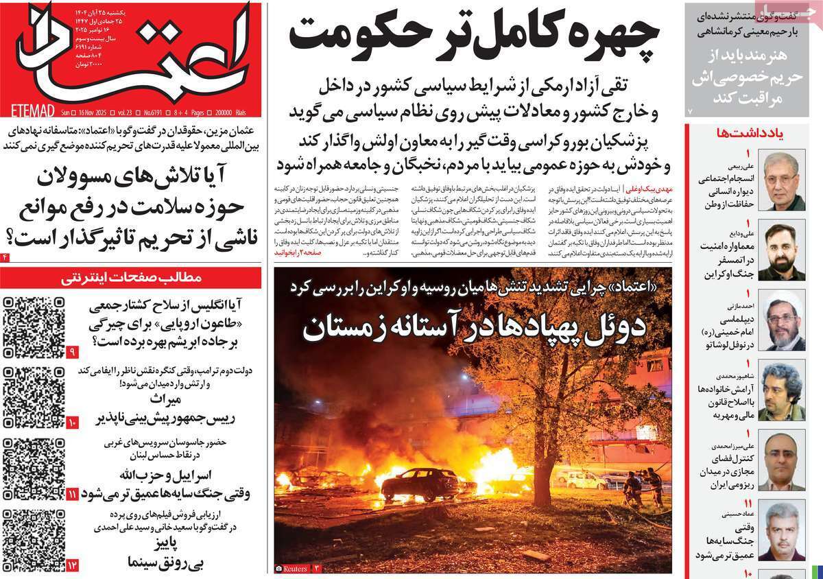 صفحه نخست روزنامه‌های یکشنبه ۲۵ آبان ماه ۱۴۰۴