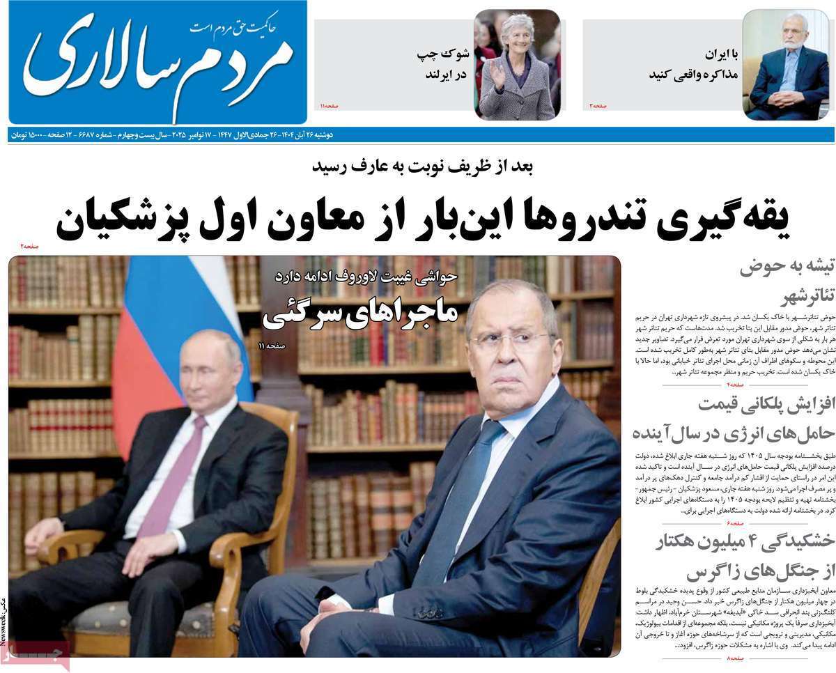 صفحه نخست روزنامه‌های دوشنبه ۲۶ آبان ماه ۱۴۰۴