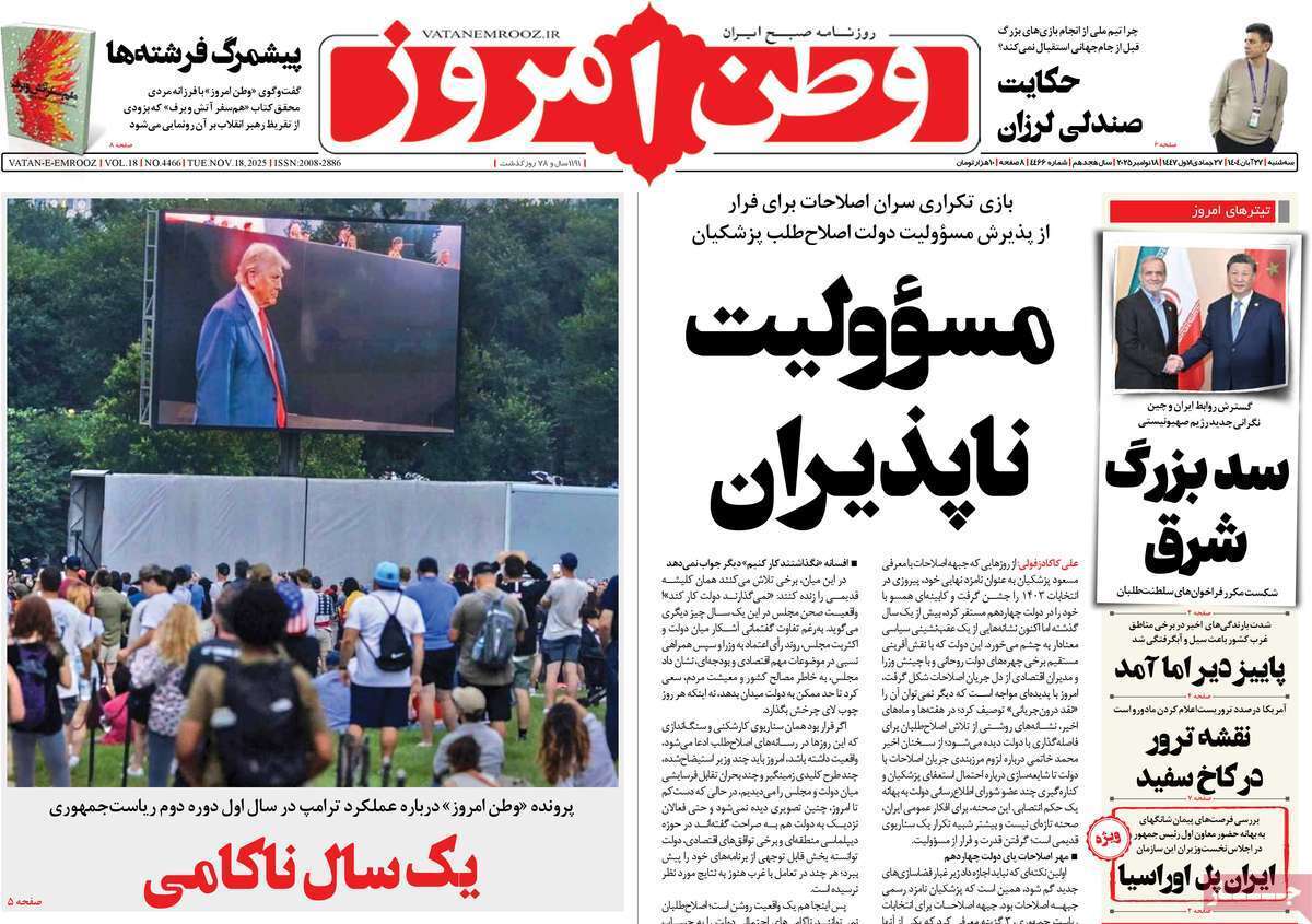 صفحه نخست روزنامه‌های سه‌شنبه ۲۷ آبان ماه ۱۴۰۴
