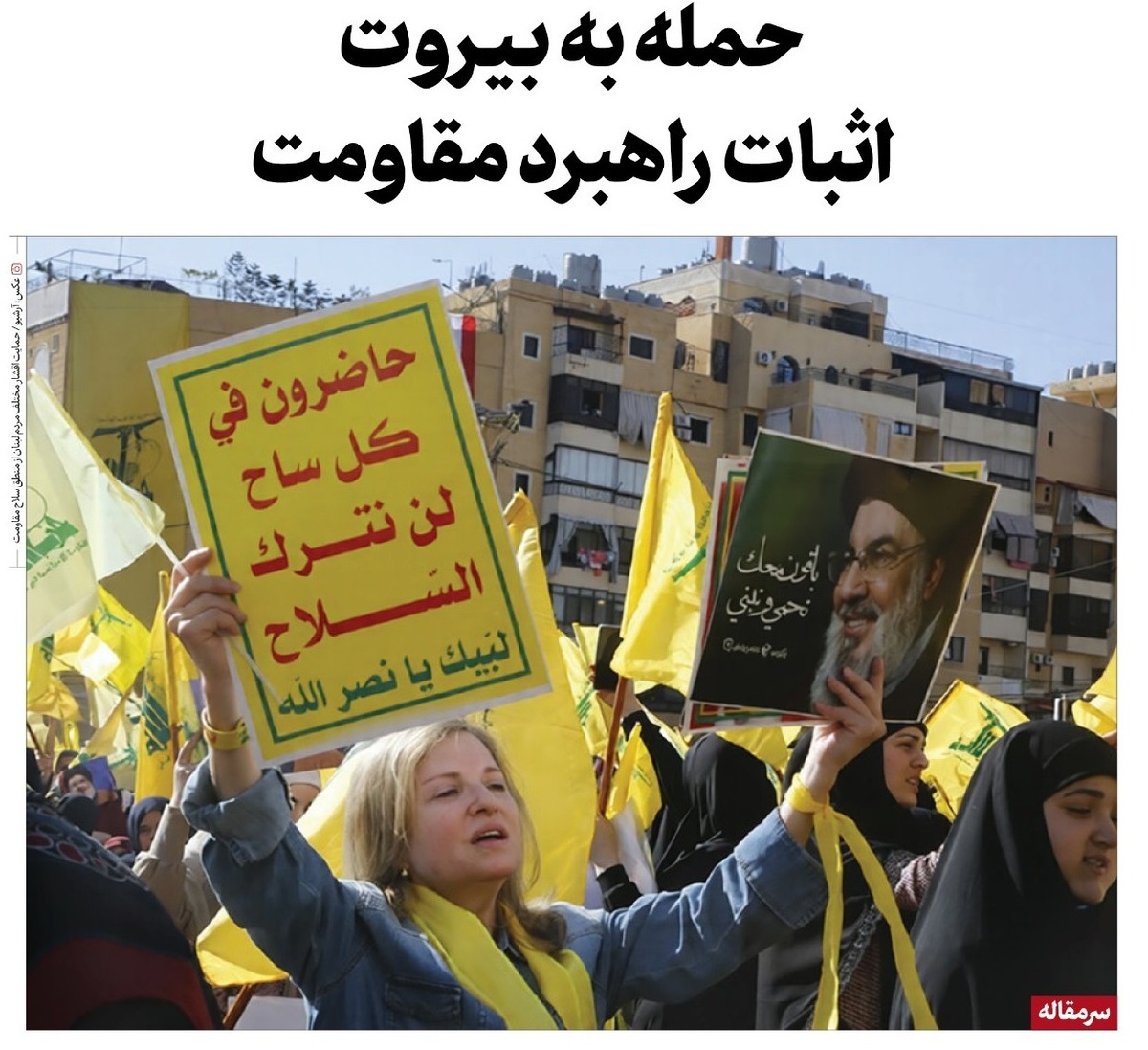 نظمی اگر قرار است در غرب آسیا برقرار شود نه با منطق تحمیلی آمریکا با محوریت رژیم صهیونی بهعنوان عامل بی نظمی در منطقه بلکه با مشت قدرتمند مقاومت و تحمیل اراده اش بر دشمن برقرار خواهد شد. این را ترور یکشنبه عصر جنوب بیروت میگوید.