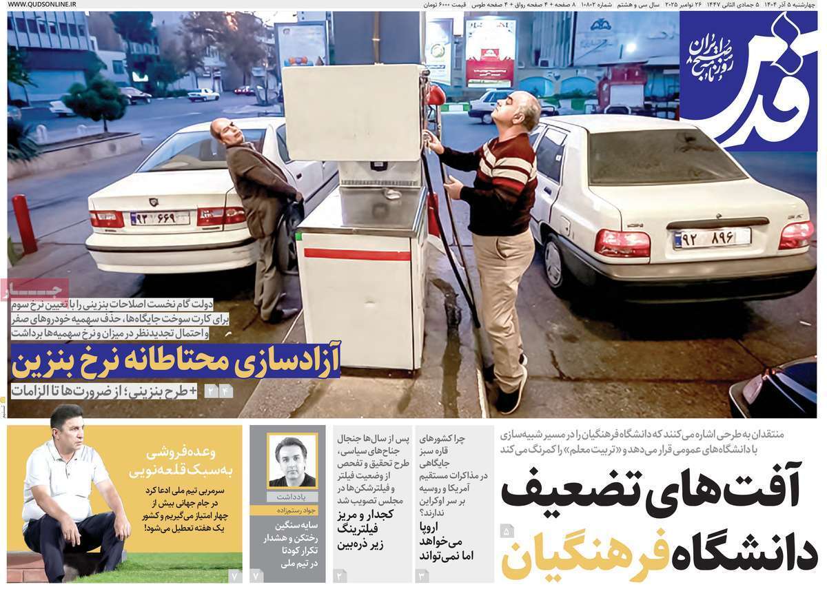 صفحه نخست روزنامه‌های چهارشنبه پنجم آذر ماه ۱۴۰۴
