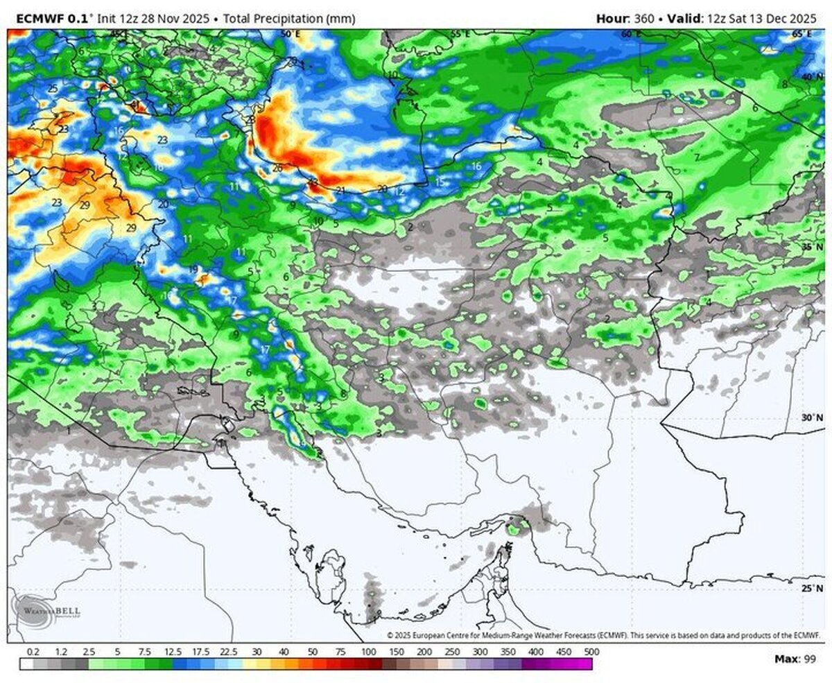 وی افزود: از روز دوشنبه (۱۰ آذر) در شمال‌غرب و از روز سه‌شنبه یازدهم آذر در مناطقی از شمال‌غرب، بخش‌هایی از غرب، دامنه‌های مرکزی زاگرس، ارتفاعات البرز مرکزی و سواحل غربی دریای خزر افزایش ابر، بارش باران، رعد و برق و وزش باد رخ می‌دهد.