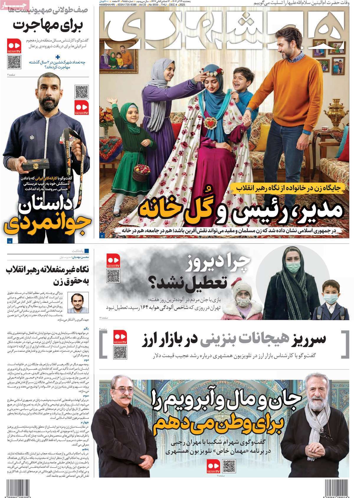صفحه نخست روزنامه‌های پنجشنبه ۱۳ آذرماه ۱۴۰۴