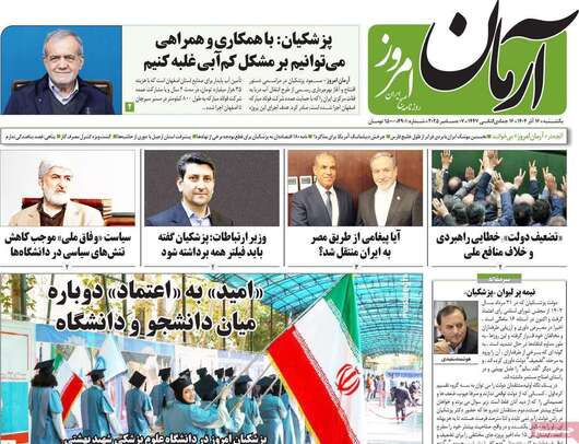 صفحه نخست روزنامههای یکشنبه نهم آذرماه ۱۴۰۴
