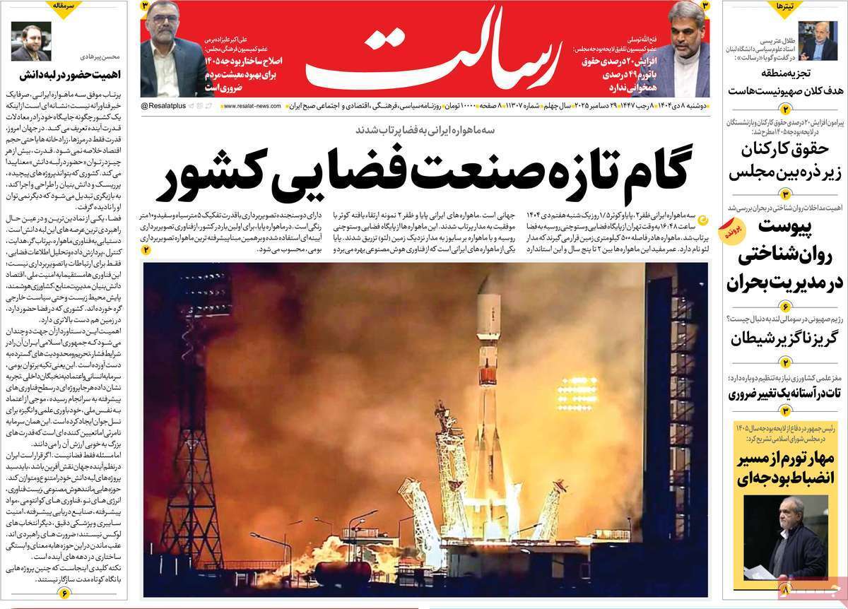 صفحه نخست روزنامه‌های دوشنبه هشتم دی ماه ۱۴۰۴