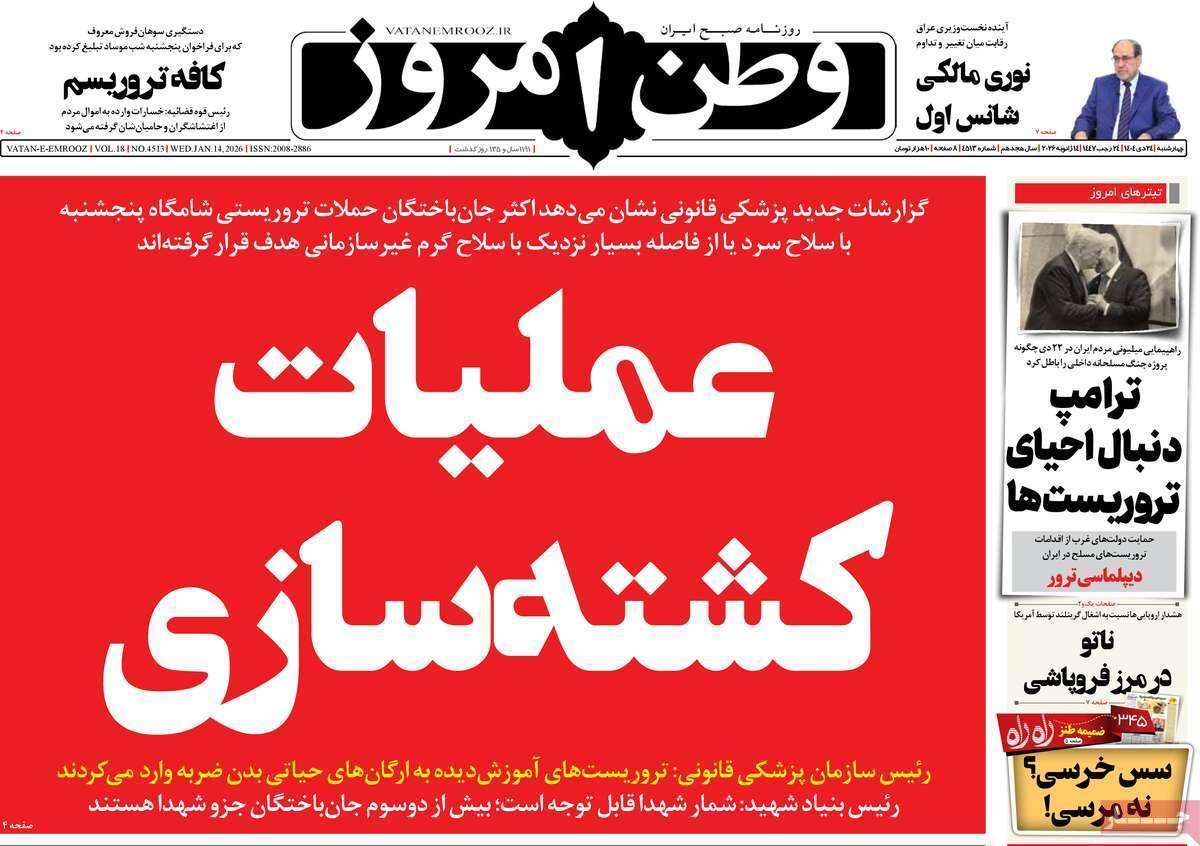 صفحه نخست روزنامههای چهارشنبه ۱۷ دی ماه ۱۴۰۴