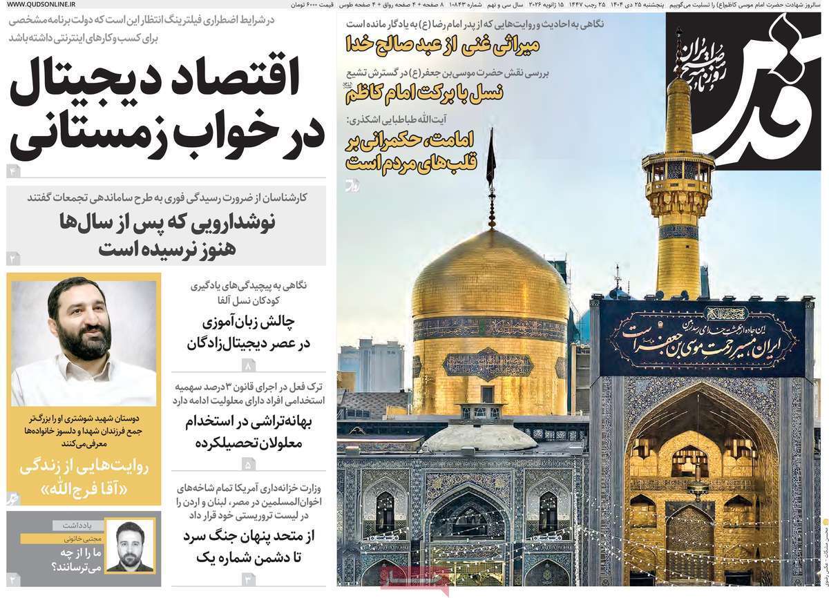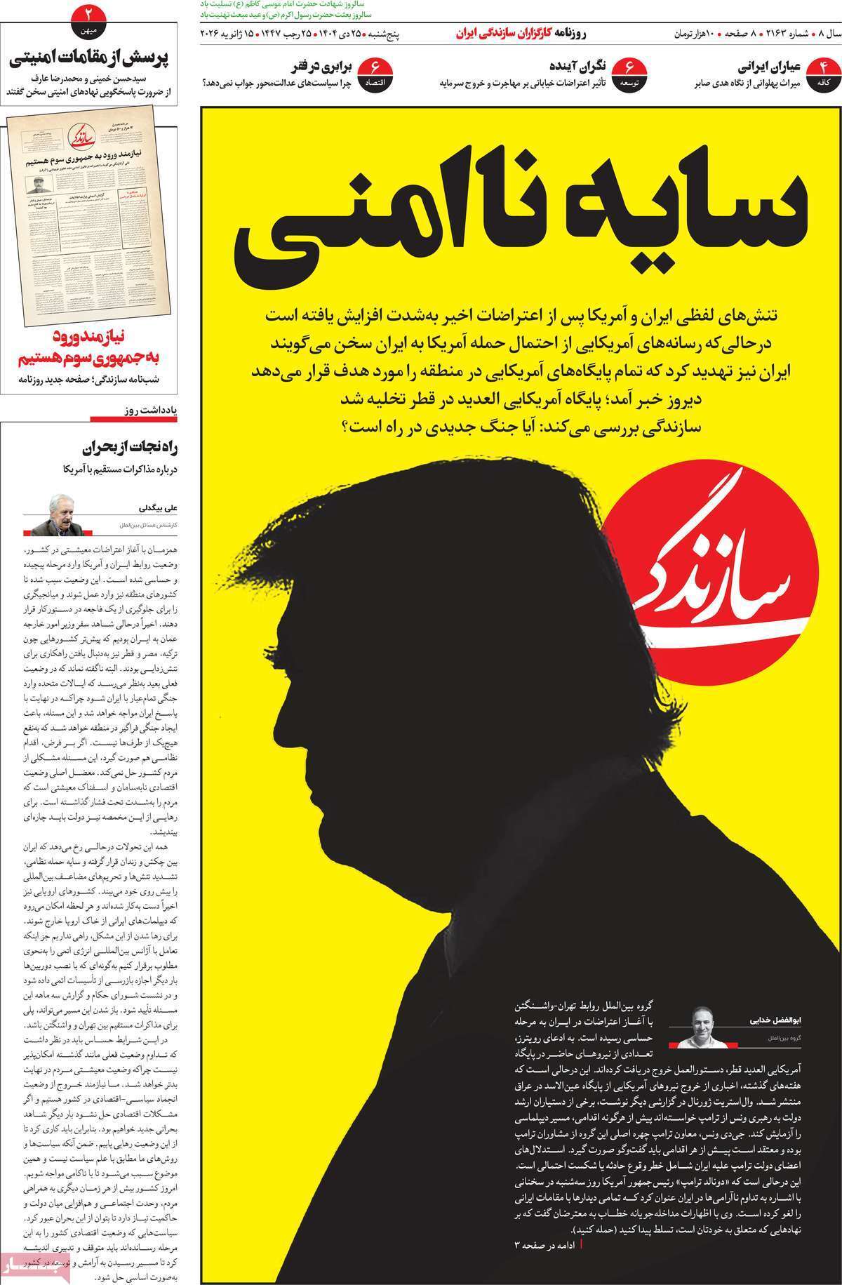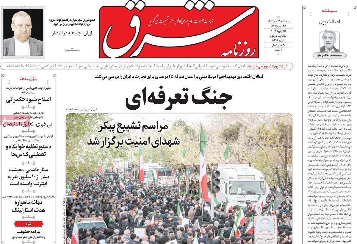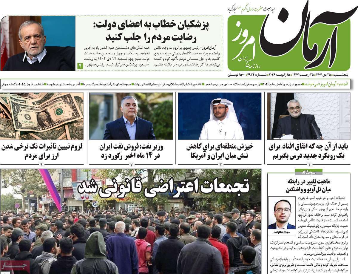 صفحه نخست روزنامههای پنجشنبه ۲۵ دی ماه ۱۴۰۴