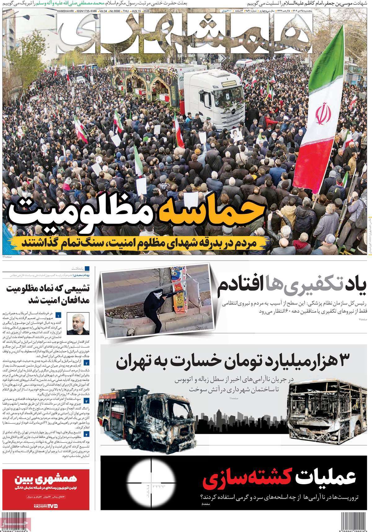 صفحه نخست روزنامههای پنجشنبه ۱۸ دی ماه ۱۴۰۴