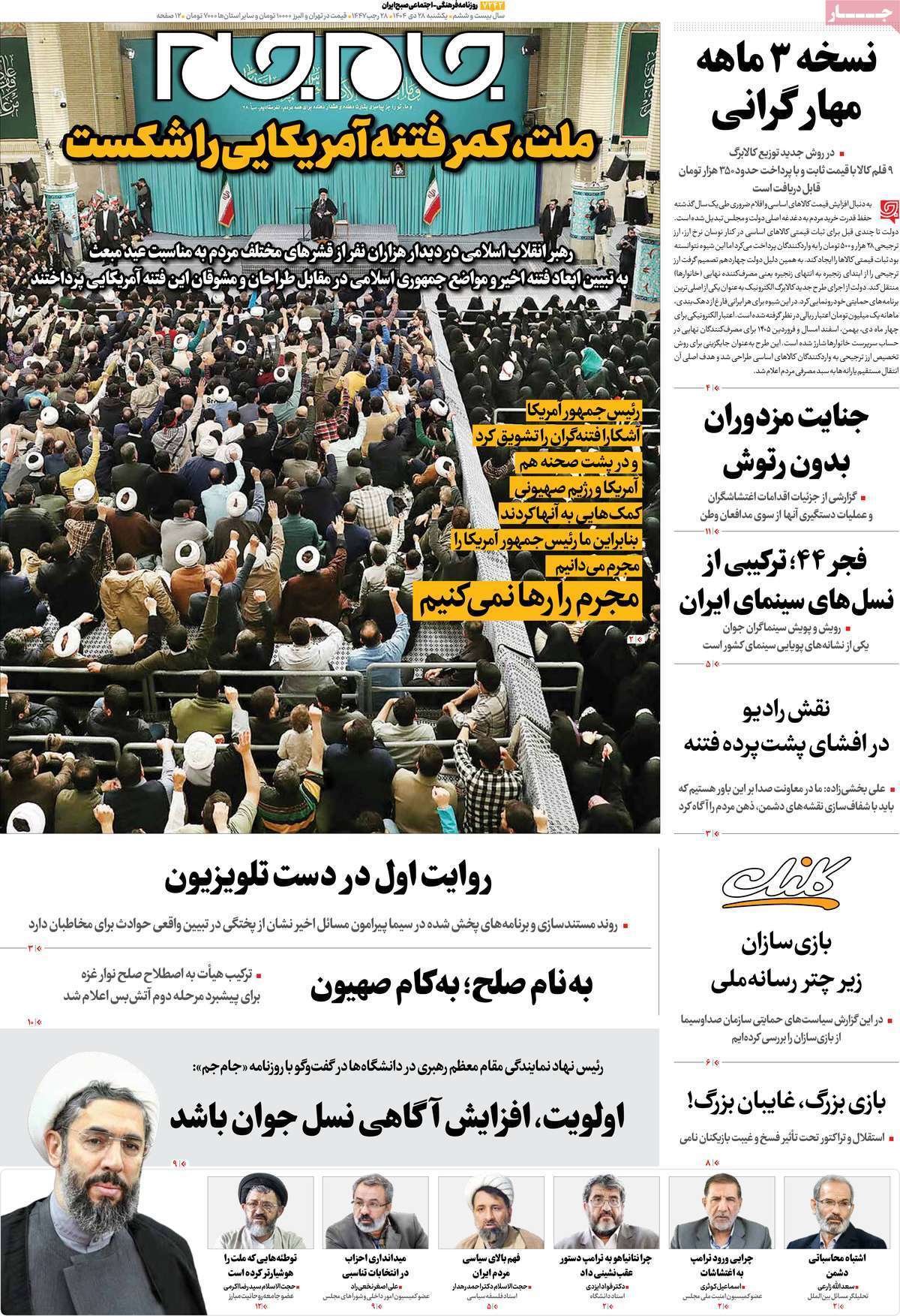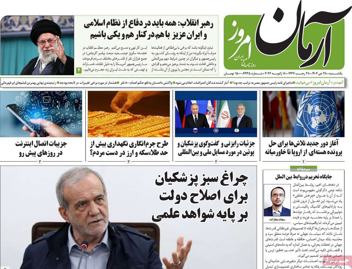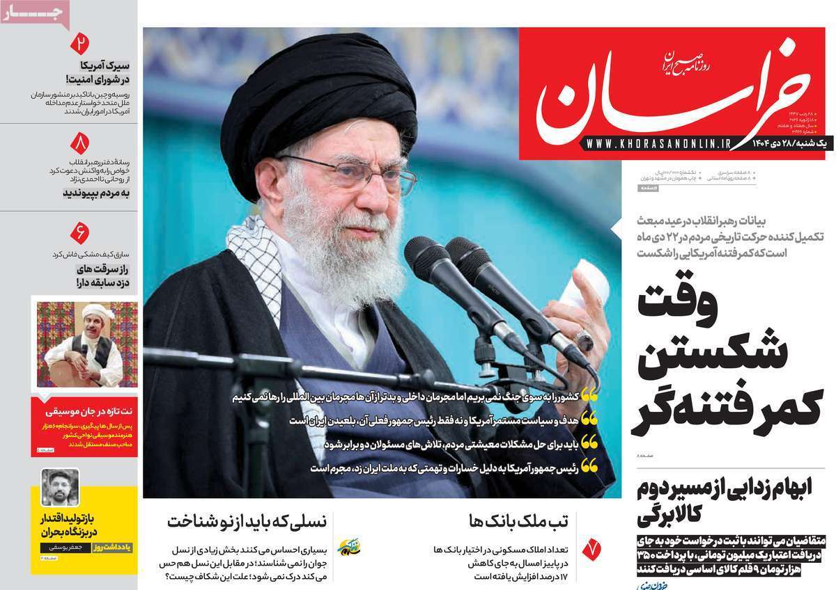 صفحه نخست روزنامههای یکشنبه ۲۸ دی ماه ۱۴۰۴