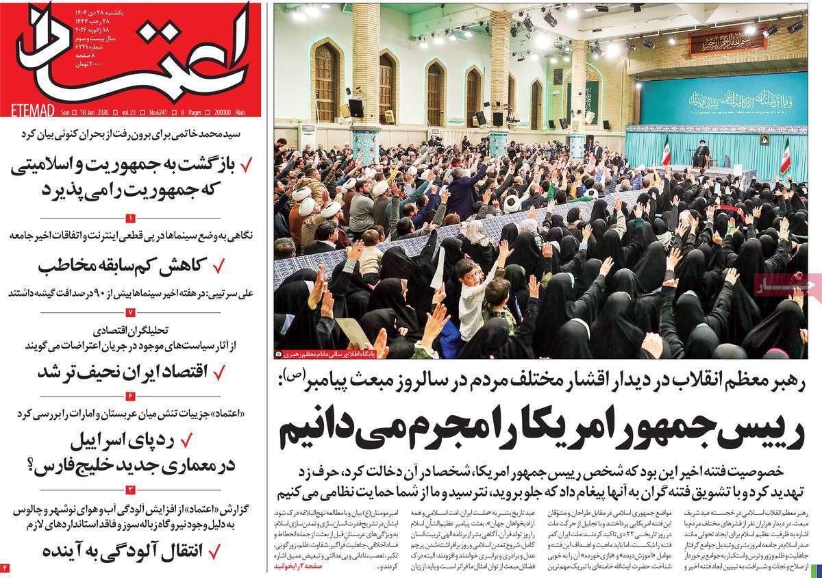 صفحه نخست روزنامههای پنجشنبه ۱۸ دی ماه ۱۴۰۴