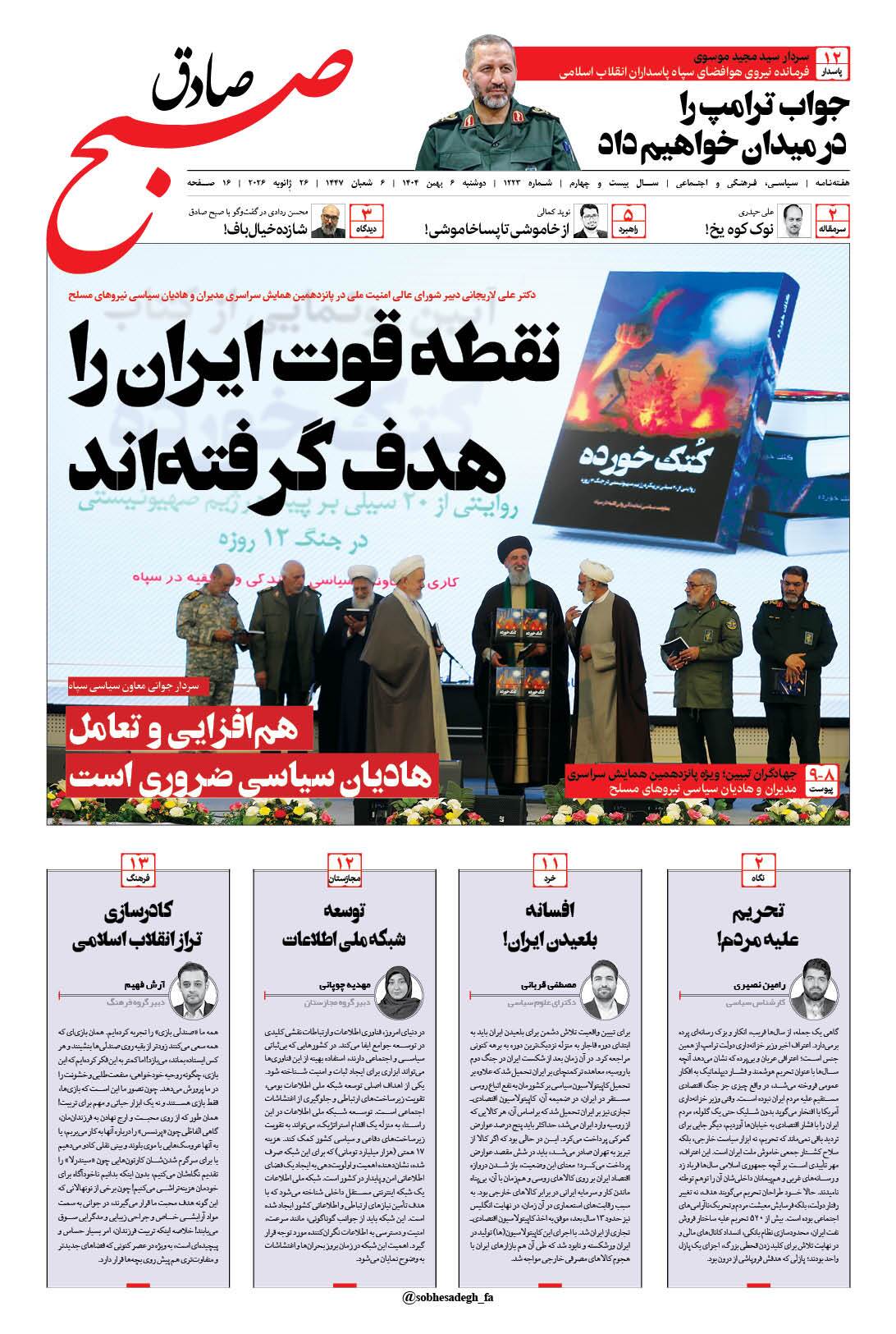 شماره 1223 جدیدترین شماره هفتهنامه صبح صادق با نسخه صوتی (آرشیو) منتشر شد.