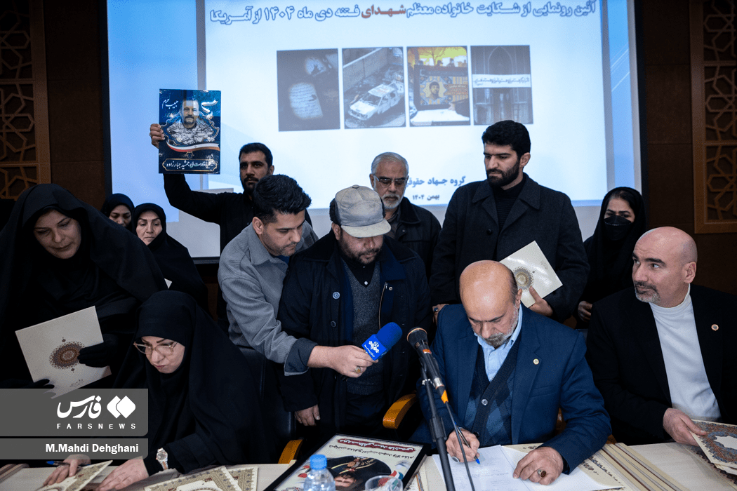 شکایت کیفری و دادخواهی حقوقی خانواده معظم شهدای فتنه از آمریکا و رژیم صهیونیستی با حضور خانواده شهدا و مسئولان حقوقی کشور در دانشگاه جامع انقلاب اسلامی برگزار شد.