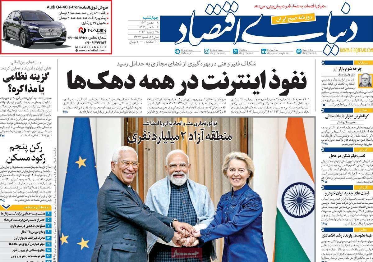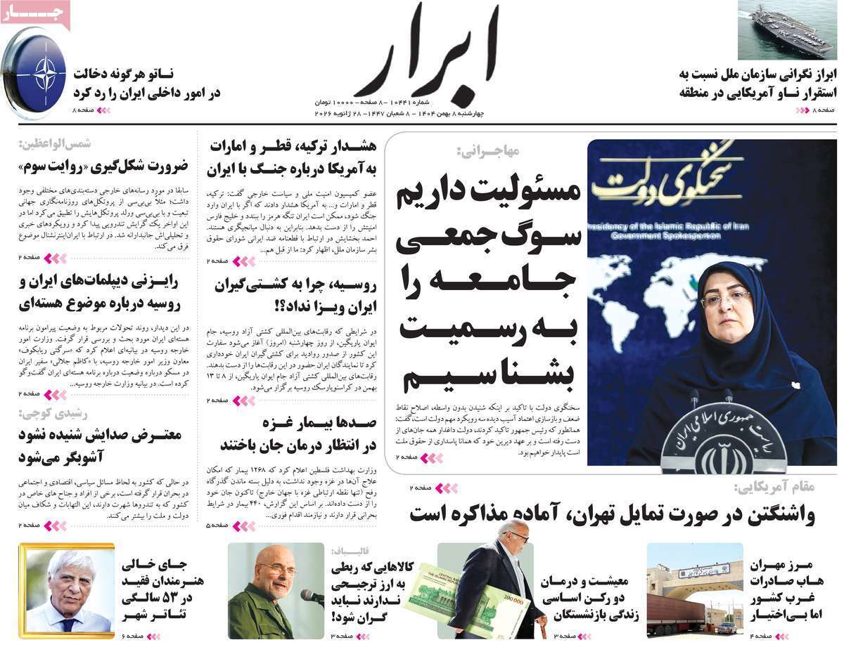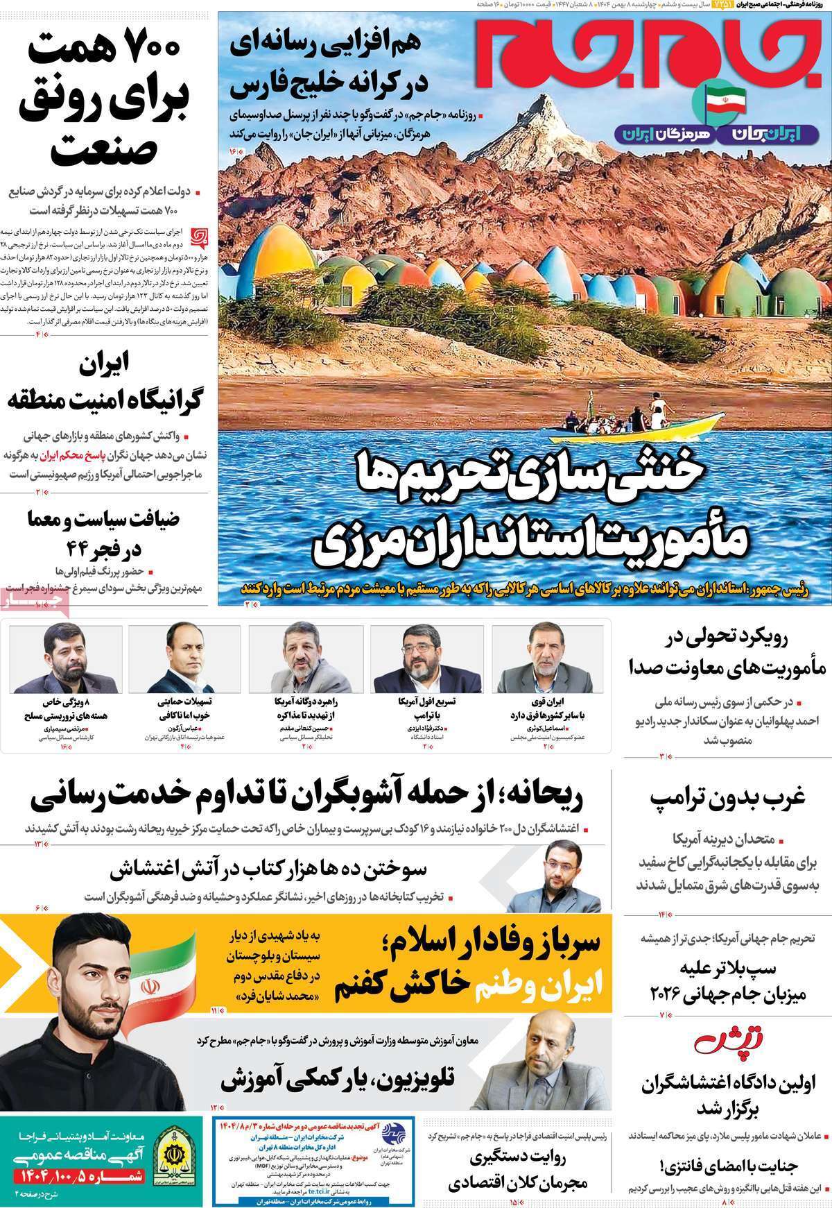 صفحه نخست روزنامههای چهارشنبه ۸ بهمن ماه ۱۴۰۴