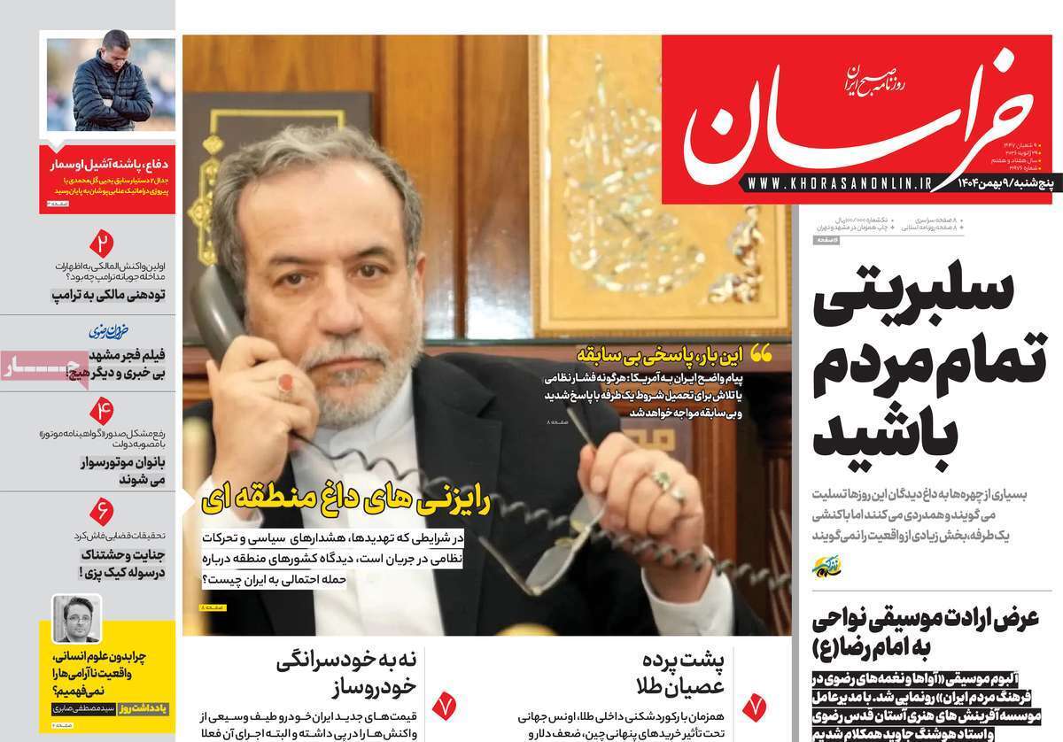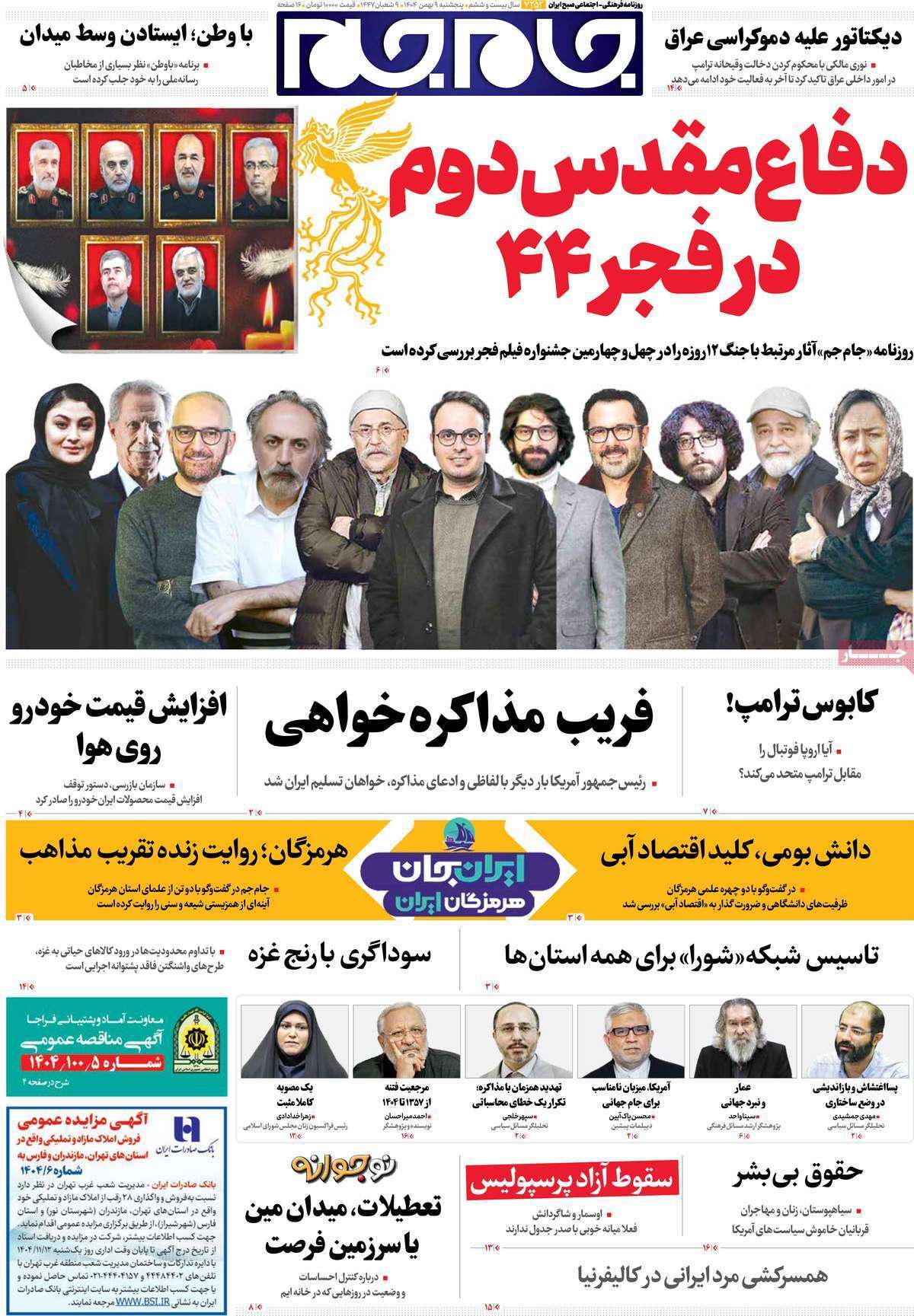 صفحه نخست روزنامههای پنجشنبه ۹ بهمن ماه ۱۴۰۴