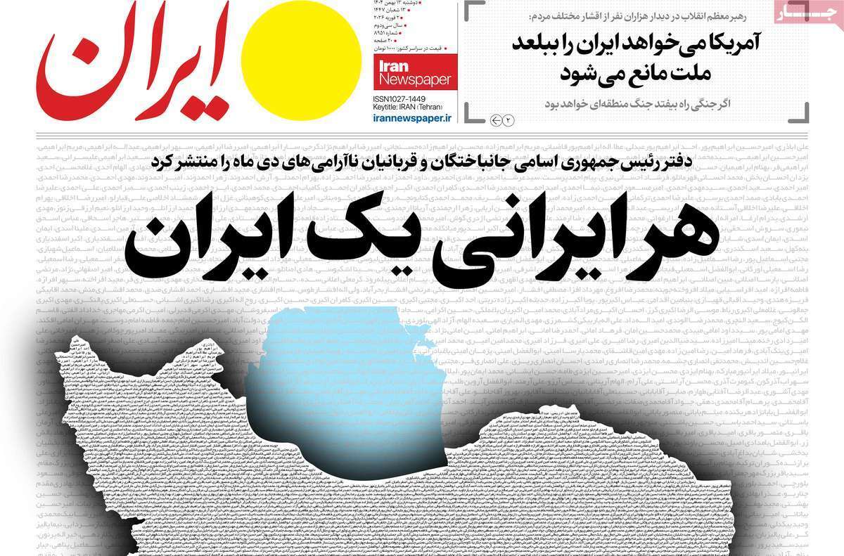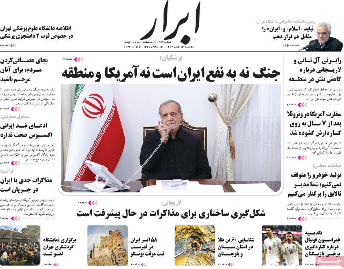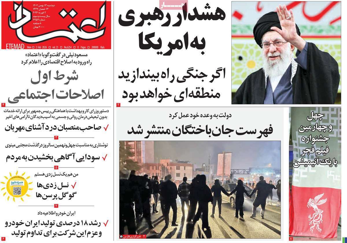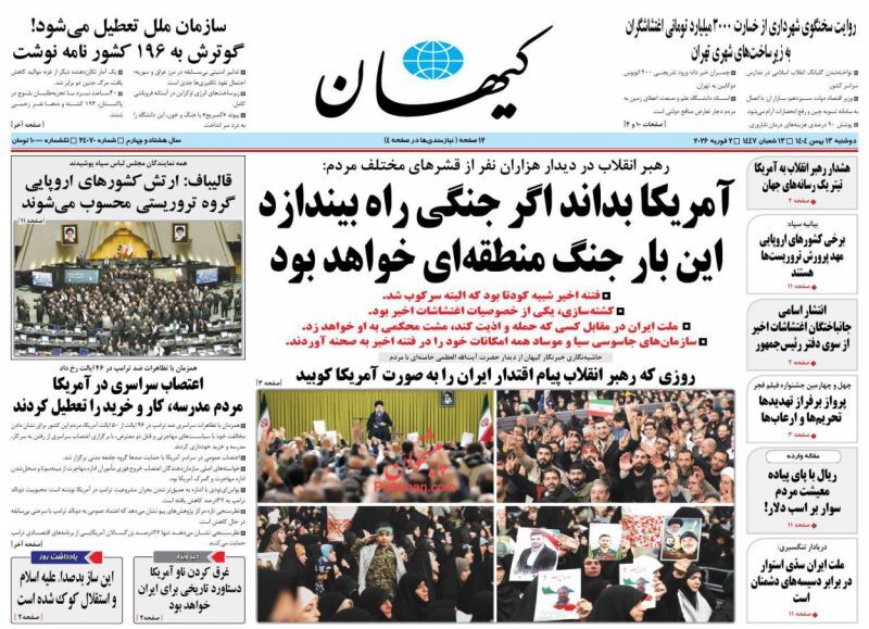 صفحه نخست روزنامههای دوشنبه ۱۳ بهمن ماه ۱۴۰۴