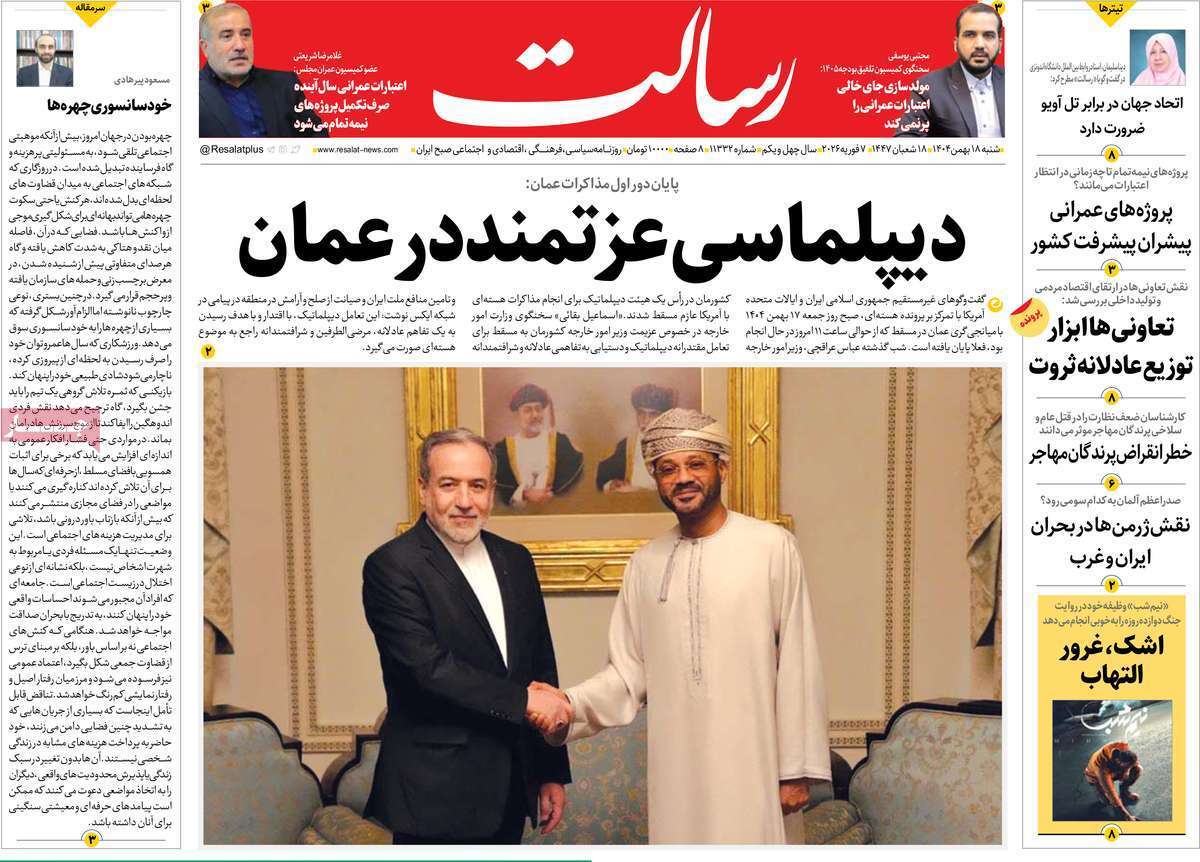 صفحه نخست روزنامههای شنبه ۱۸ بهمن ماه ۱۴۰۴