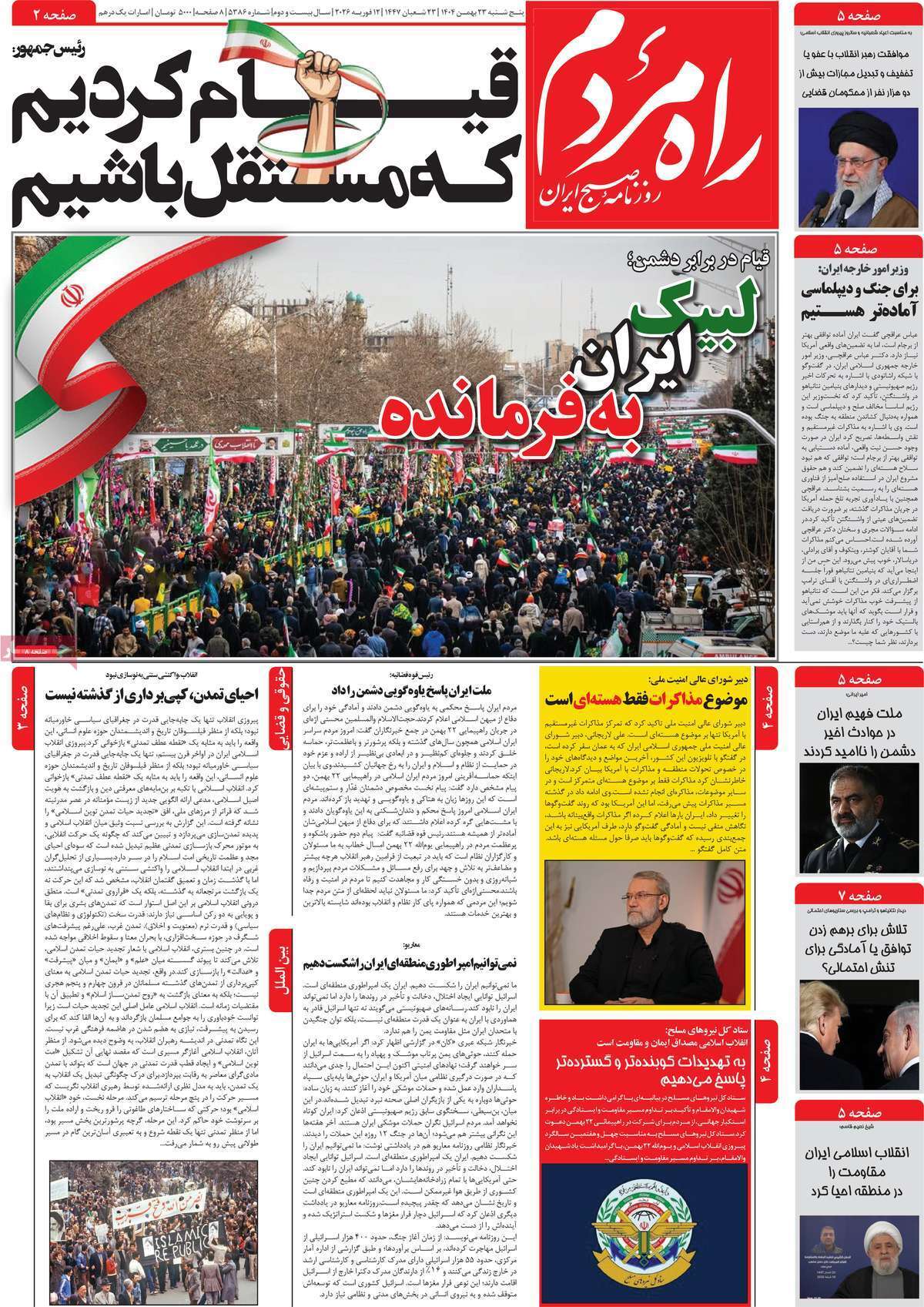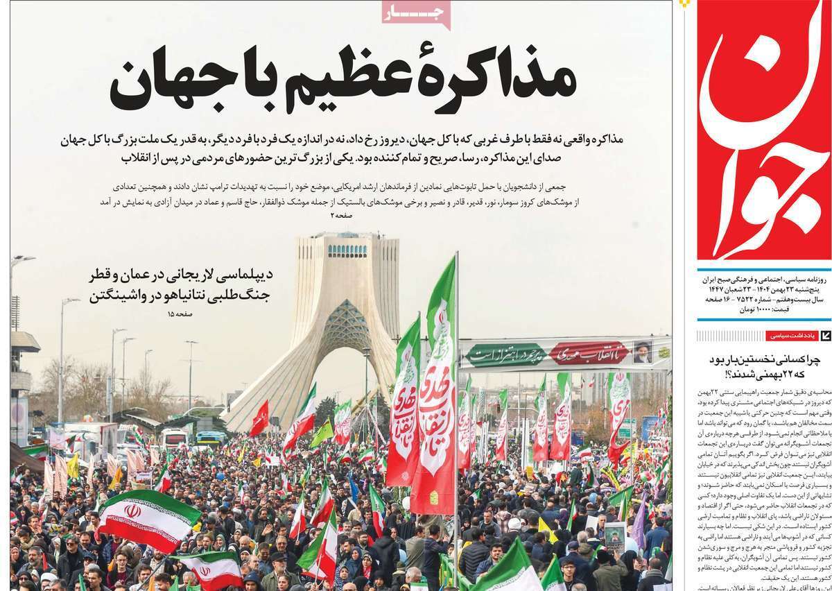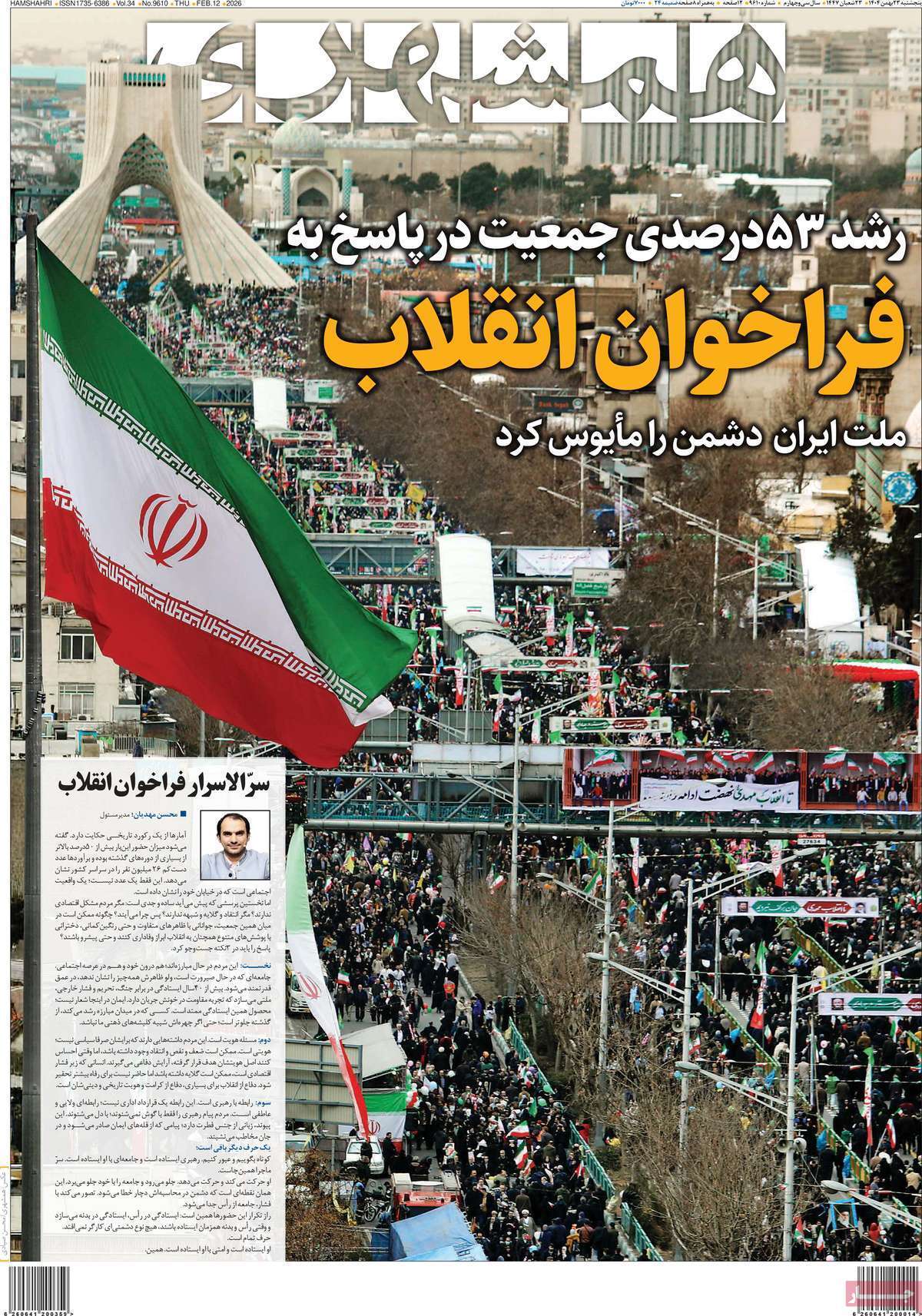 صفحه نخست روزنامه‌های پنجشنبه ۲۳ بهمن ماه ۱۴۰۴