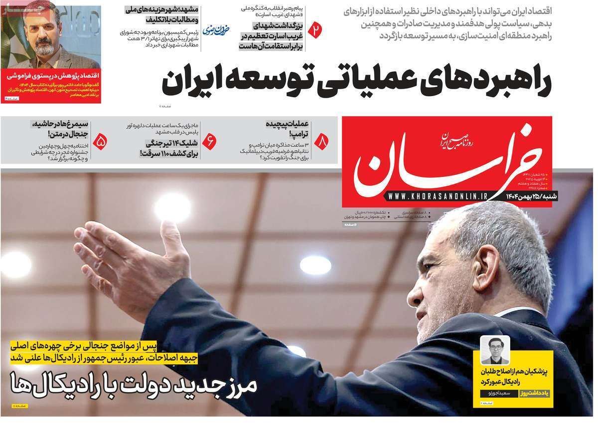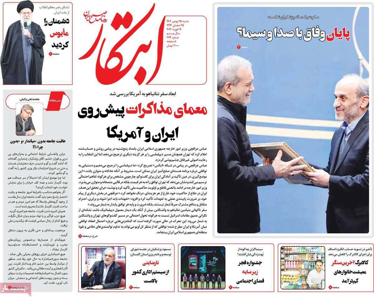 صفحه نخست روزنامههای شنبه ۲۵ بهمن ماه ۱۱۴۰۴