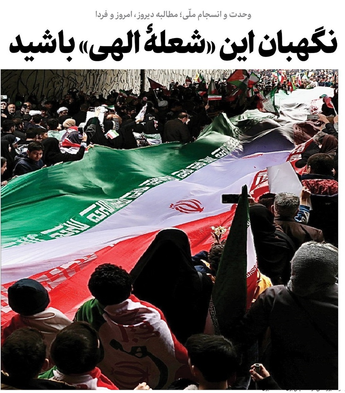 * بیست و سوم بهمن ۱۳۵۷، یک روز پس از پیروزی انقلاب اسلامی، حضرت امام خمینی رحمه‌الله پیامی خطاب به مردم صادر کردند. پیامی که در آن یک توصیه و مطالبه بر هر چیز مقدم بود و از همه پررنگ‌تر؛ «من از ملّت شریف و مبارز ایران تشکر می‌کنم. من از این وحدت کلمه‌ای که بین اقشار ملّت به‌وجود آمده است سپاسگزاری می‌کنم … از این به بعد توجه به بسیاری از امور لازم است که عمده آن توجه به حفظ وحدت کلمه است. ما در بین مبارزه هستیم و باز محتاج به وحدت کلمه هستیم؛ باز باید همه اقشار با هم برادروار و در کنار هم آماده باشند برای مبارزه و جلوگیری از تشتّتات و اختلافات. اگر خدای ناخواسته اختلافات پیدا شوند، معلوم نیست که ما به پیروزی نهایی برسیم. من به همه ملّت توصیه می‌کنم که به همین نحو که تاکنون به وحدت کلمه خودشان ادامه داده‌اند از این به بعد هم ادامه دهند. همین‌طور که حسّ انسانیت و ملّیّت و اسلامیّت در آنها بیدار شده، آن را بیدارتر نگه دارند و نگذارند این شعله الهی خاموش شود.»